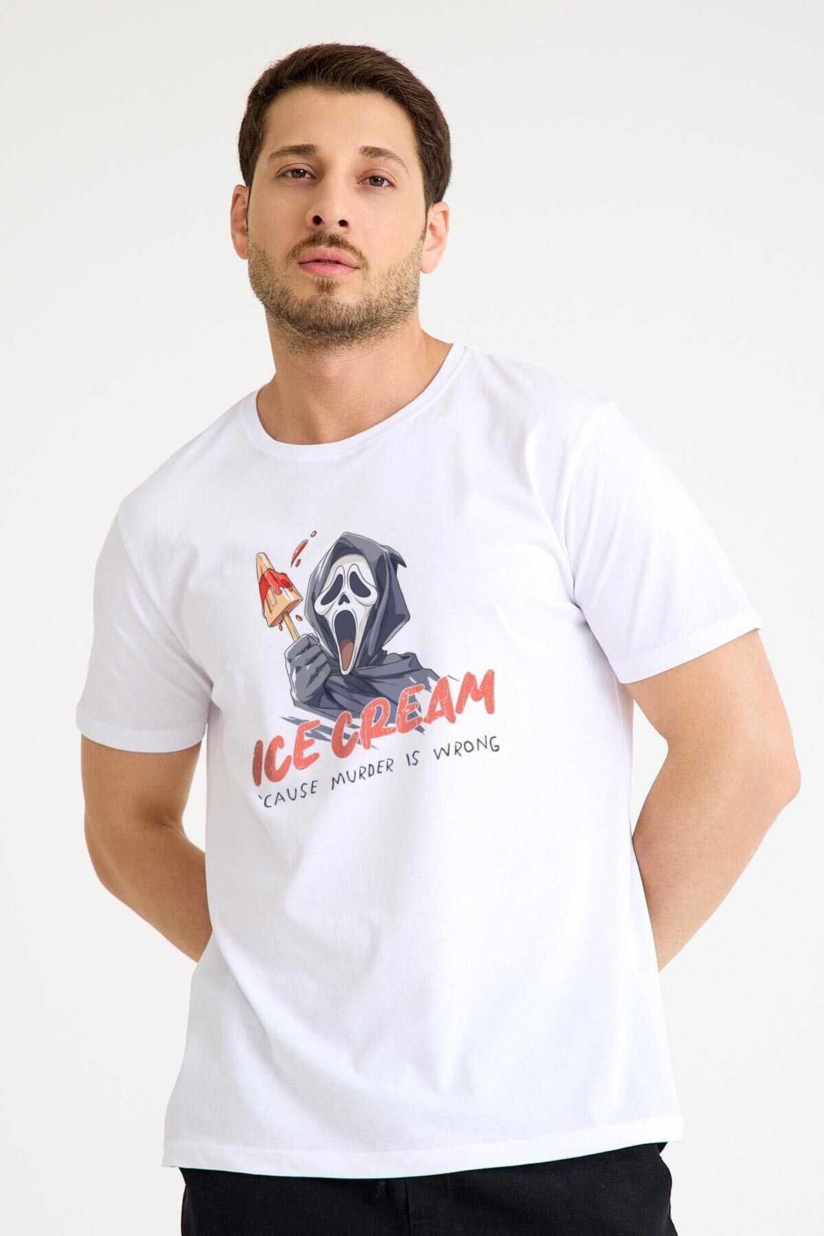 Ice Cream Scream Summer Funny T-shirt Yaz Eğlenceli Dondurma Baskılı Beyaz Tişört