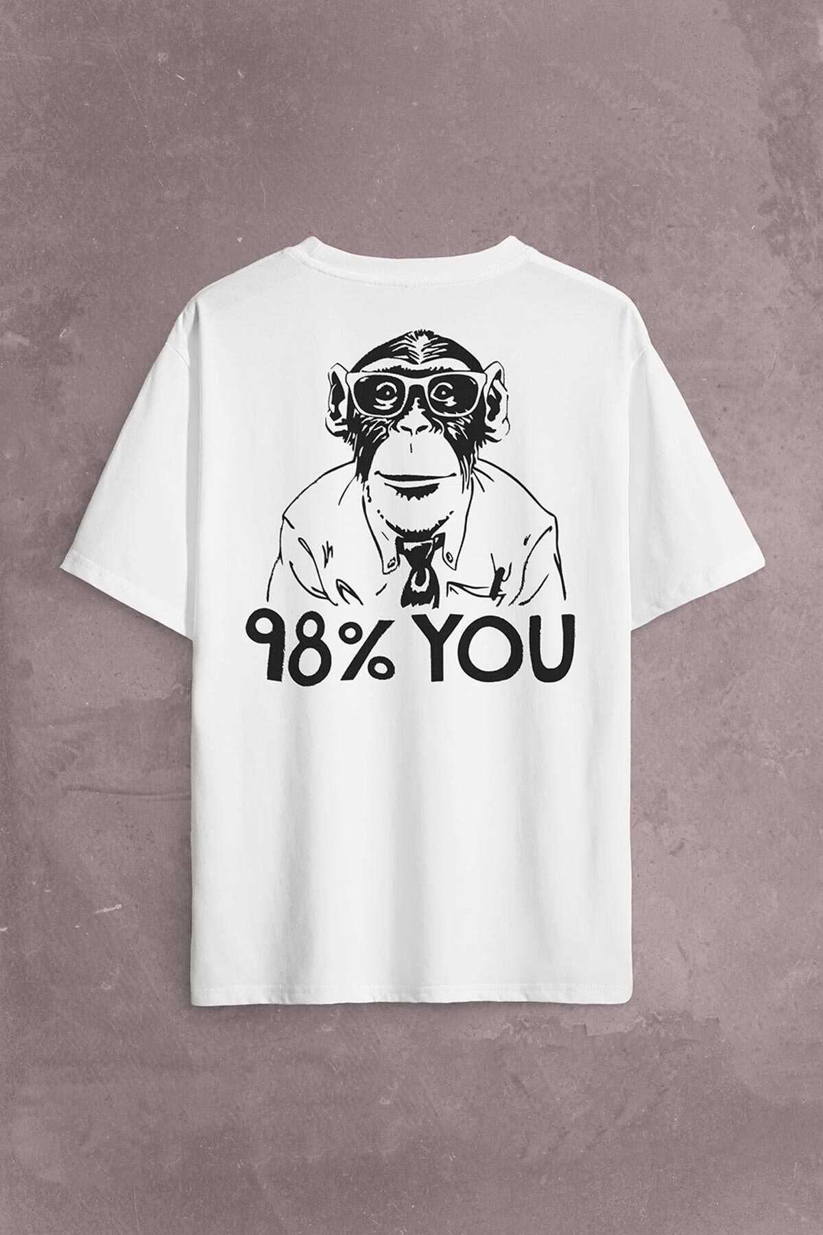 İnsan Evrim Şempanze %98 Chimp Evolution Dna Sırt Ön Baskılı Oversize Tişört Unisex T-Shirt