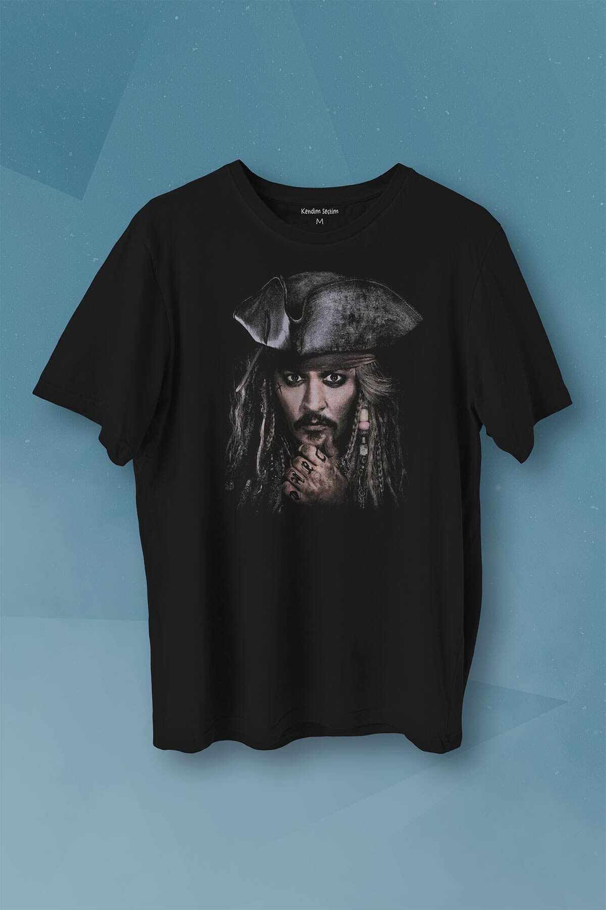 Jhonny Depp Captain Jack Sparrow Karayip Korsanları Pirates Caribbean Baskılı Tişört Unisex T-shirt