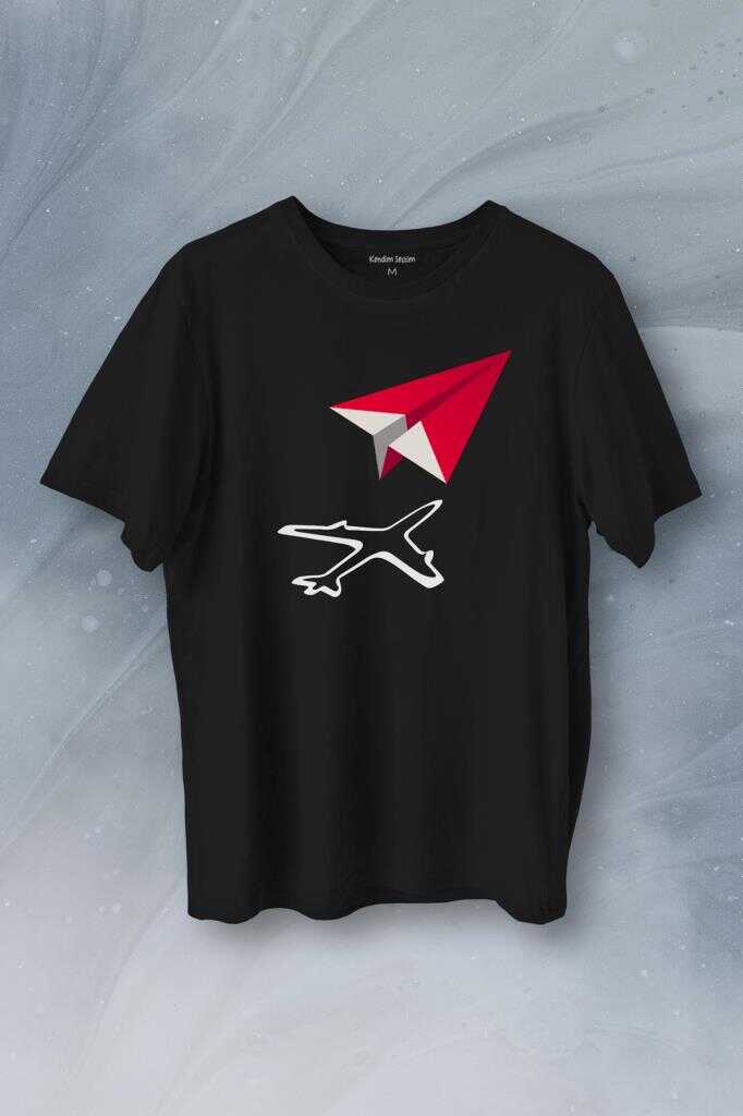 Kağıt Uçak Hayaller Hayatlar Fly Pilot Baskılı Tişört Unisex T-Shirt
