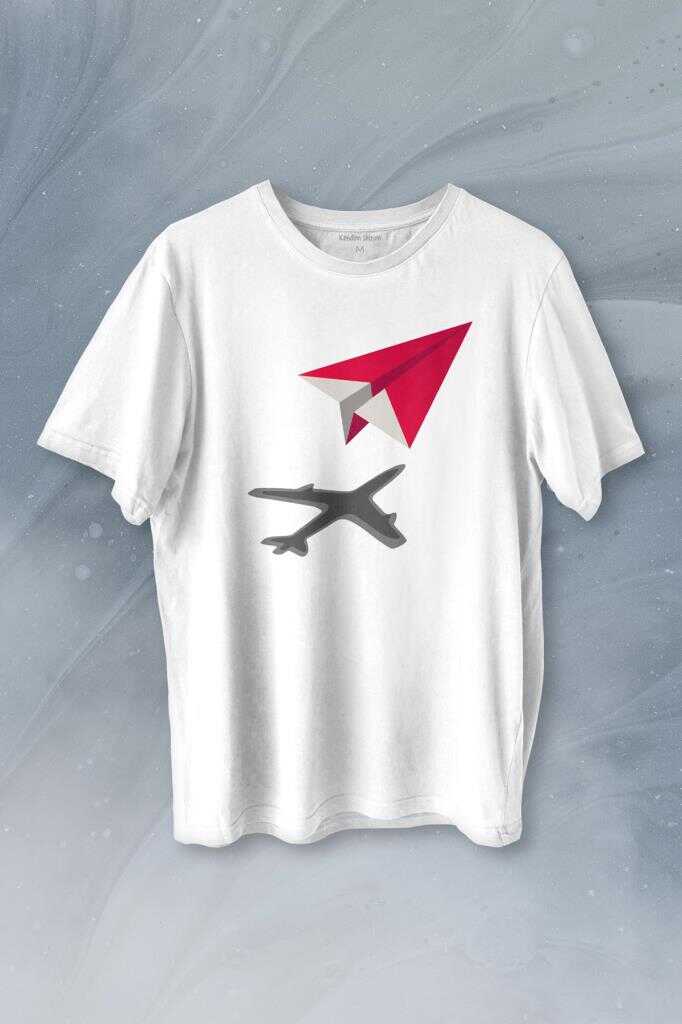 Kağıt Uçak Hayaller Hayatlar Fly Pilot Baskılı Tişört Unisex T-shirt