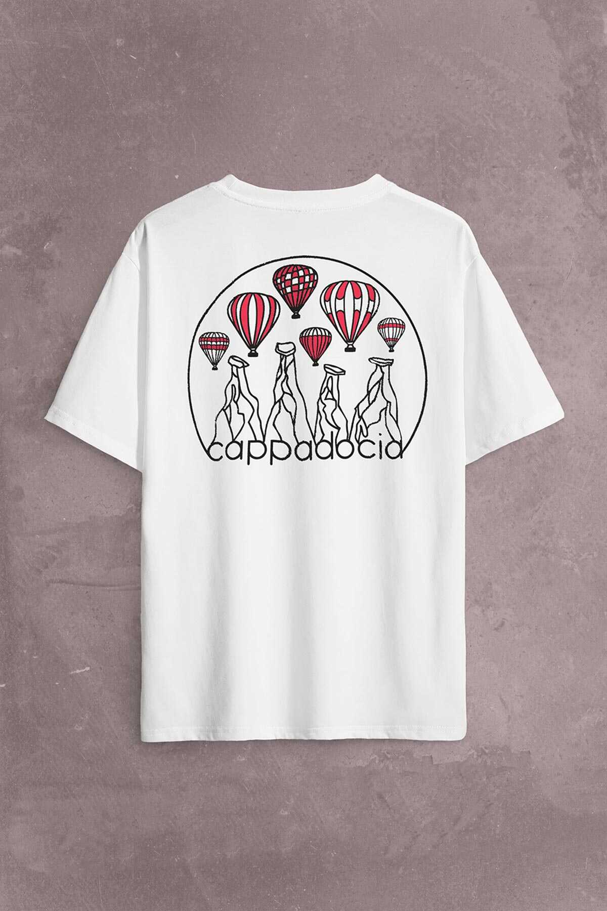Kapadokya Nevşehir Peri Pacaları Cappadocia Sırt Ön Baskılı Oversize Tişört Unisex T-Shirt