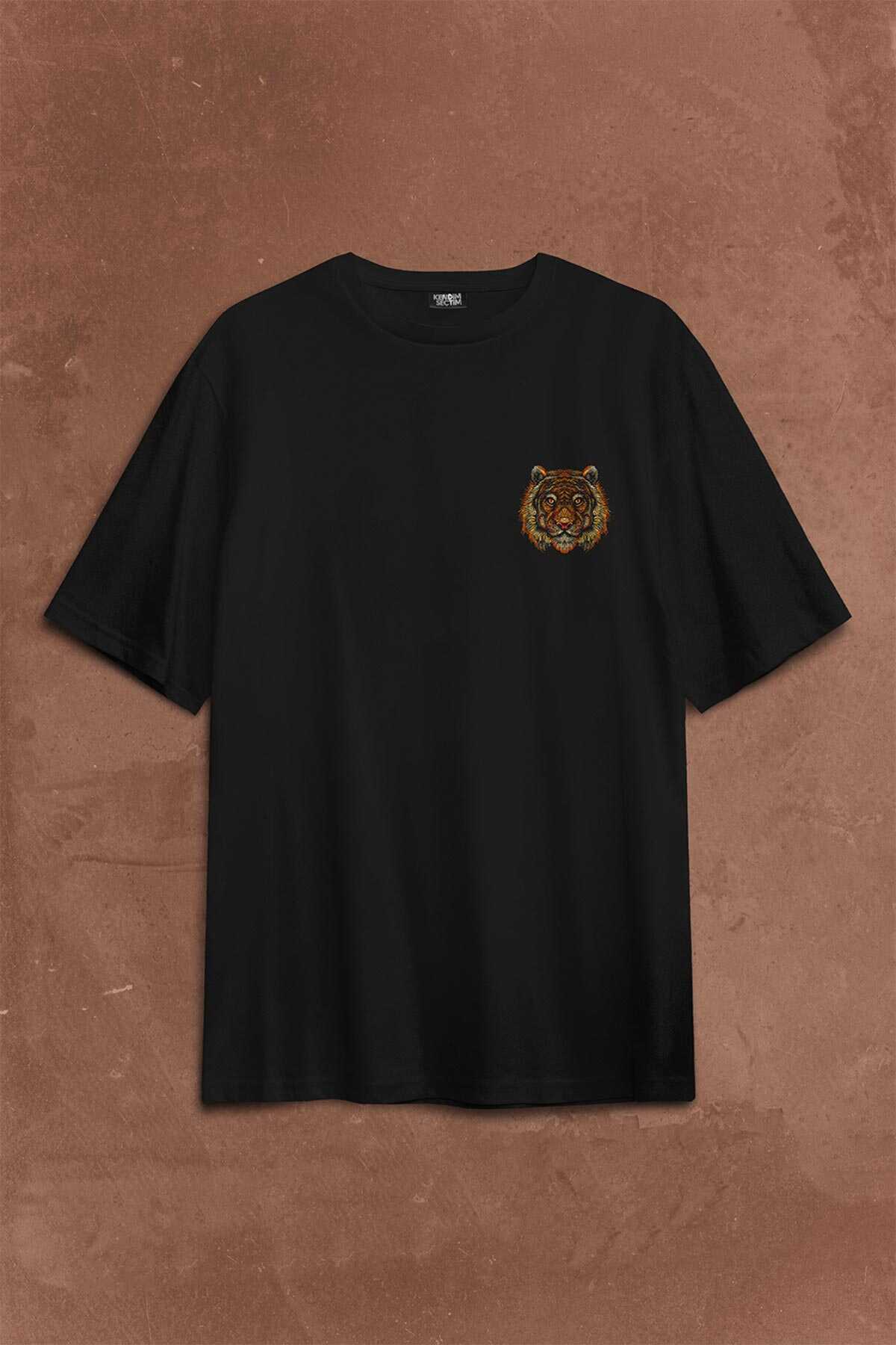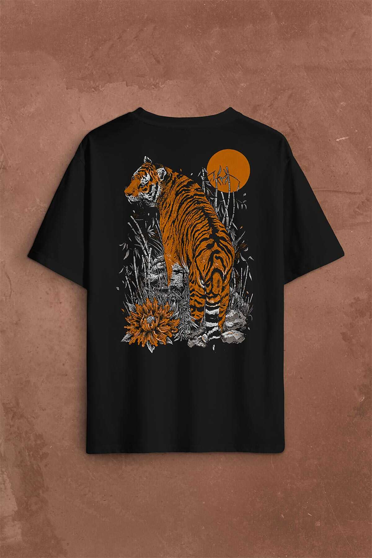 Kaplan Ay Dolunay Moon Tiger Sırt Ön Baskılı Oversize Tişört Unisex T-Shirt