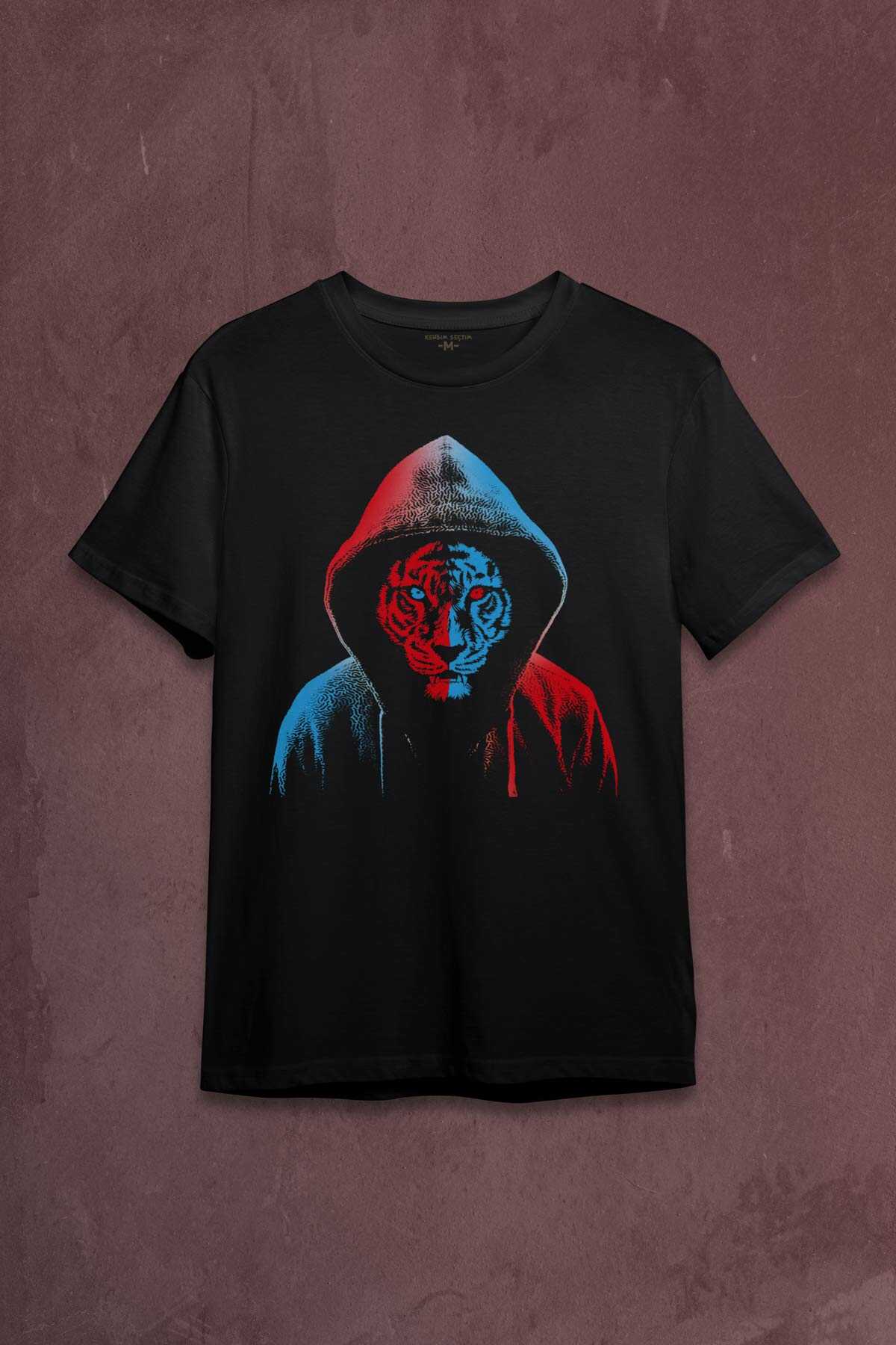 Kaplan Tiger Trabzon Kedisi Mavi Bordo Baskılı Tişört Unisex T-shirt