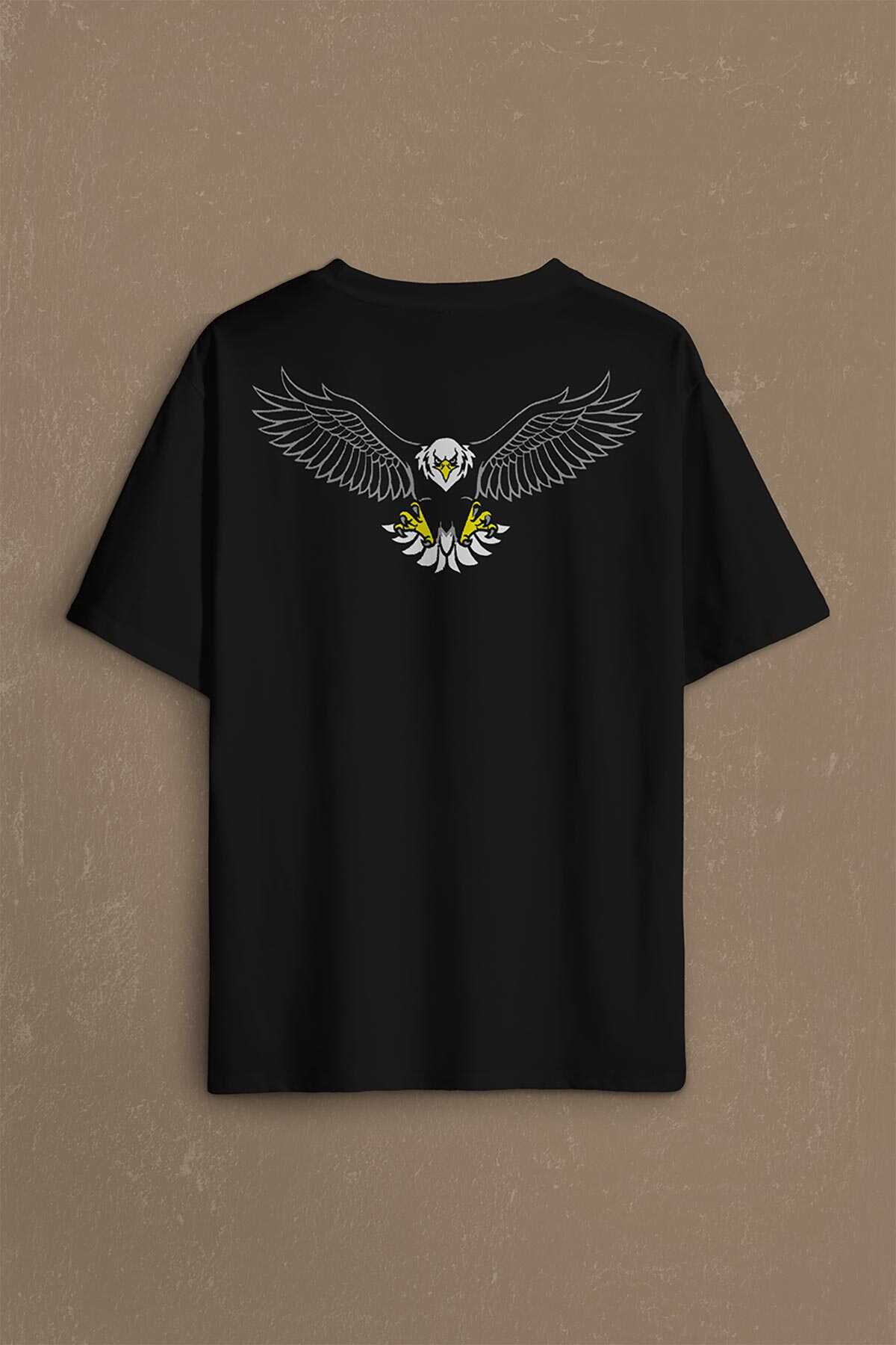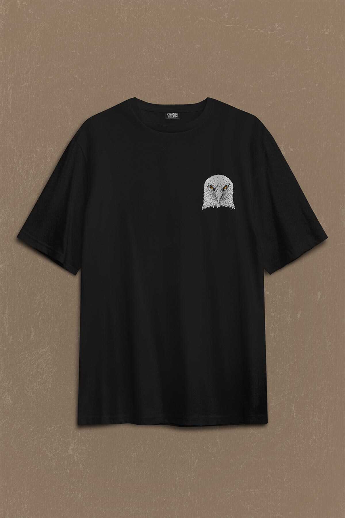 Black Oversize T-shirt Kara Kartal Eagle Tasarım Sırt Ön Baskılı Tişört Unisex T-Shirt.