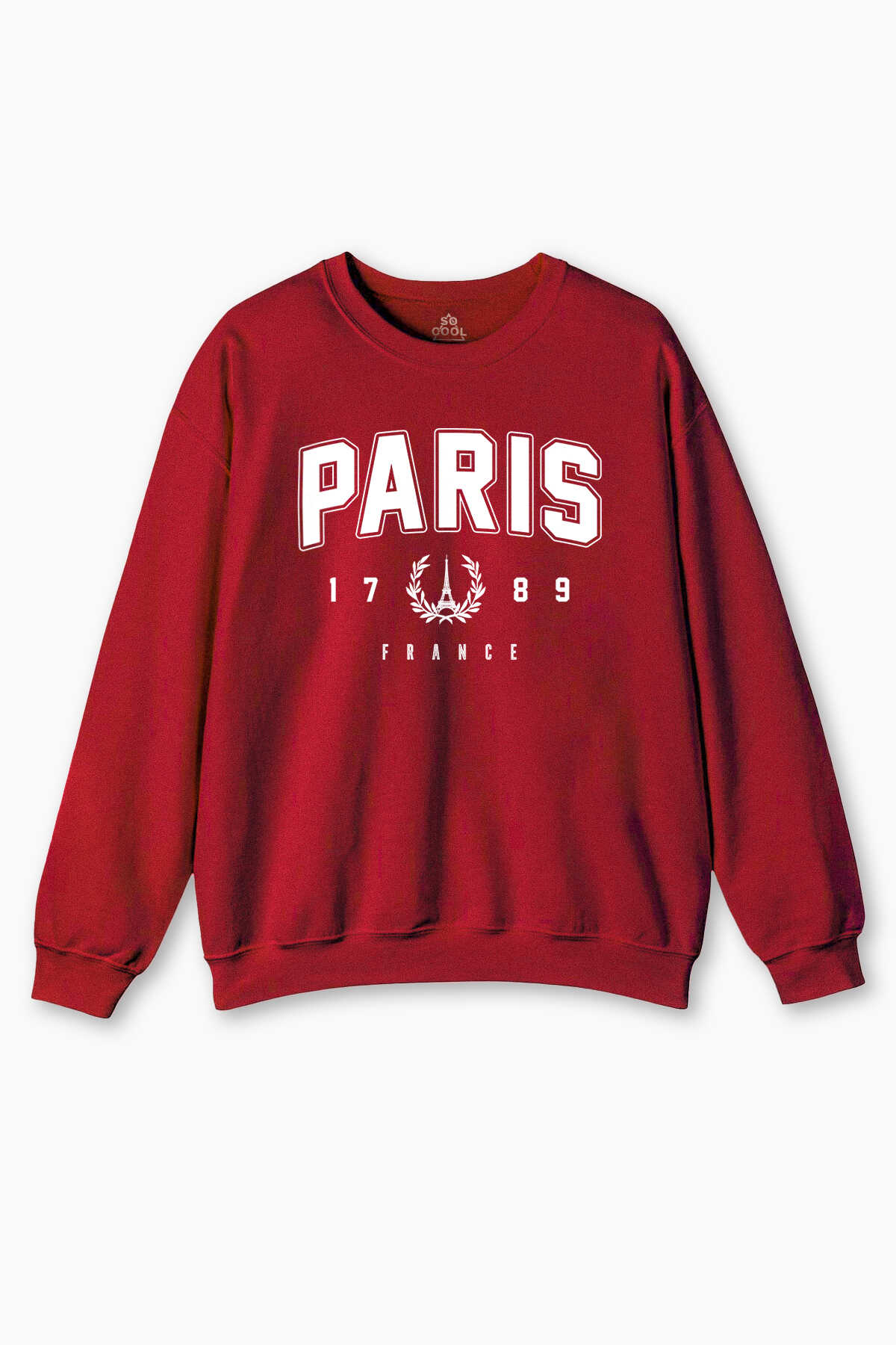 Kırmızı Sweat Paris France Fransa Şehir Yazı Baskılı Şardonlu Yumuşak Sweatshirt