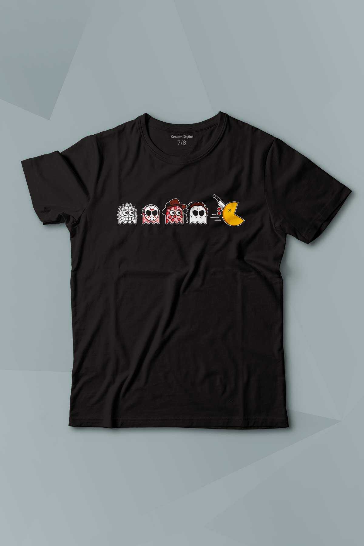 Kısa Kollu Çocuk Tişört Among Us Pacman Hallowen Korku Film Oyun Siyah Baskılı T-shirt