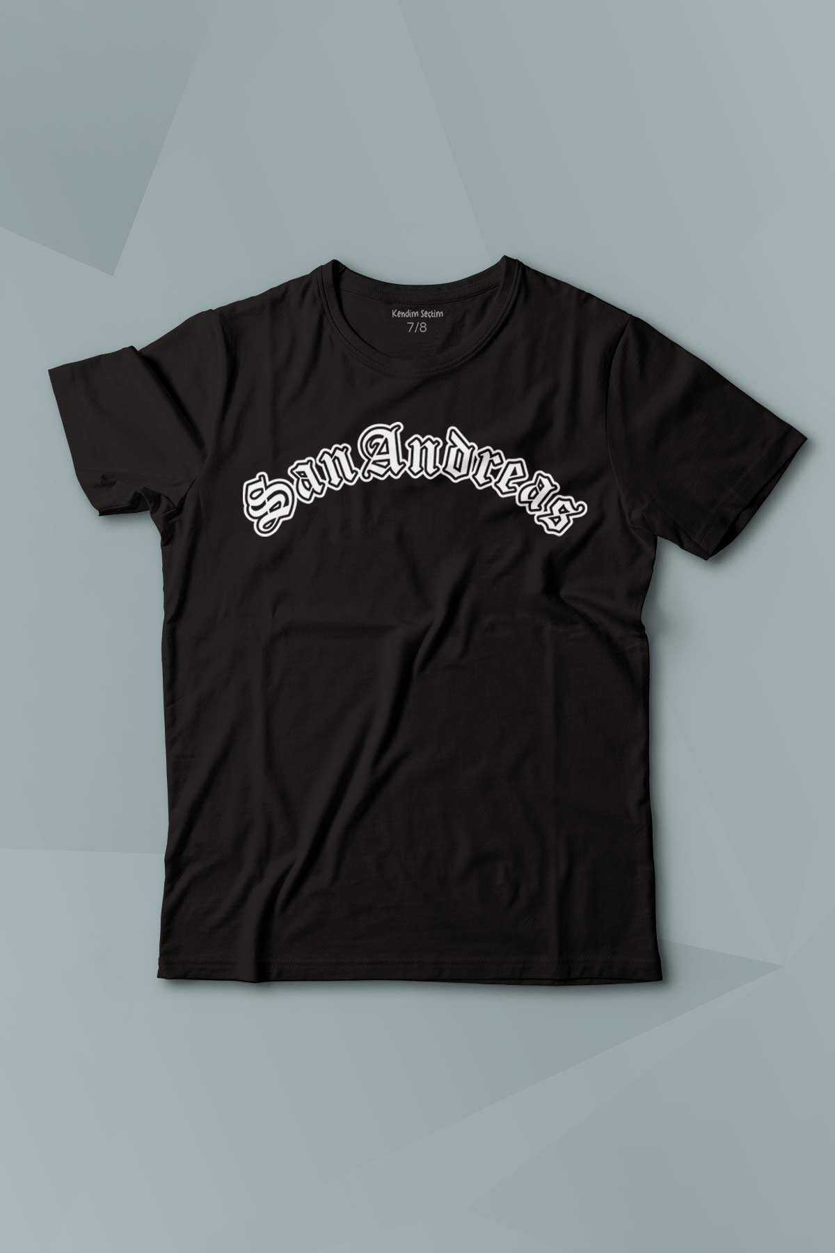 Kısa Kollu Çocuk Tişört San Andreas Tipografi Siyah Baskılı T-Shirt