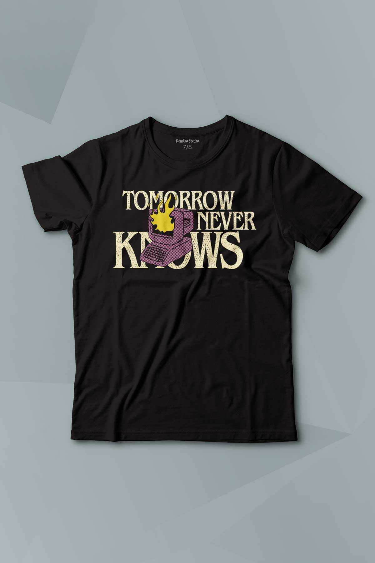 Kısa Kollu Çocuk Tişört Tomorrow Never Knows y2k Future Vintage Sokak Siyah Baskılı T-shirt T03S4368