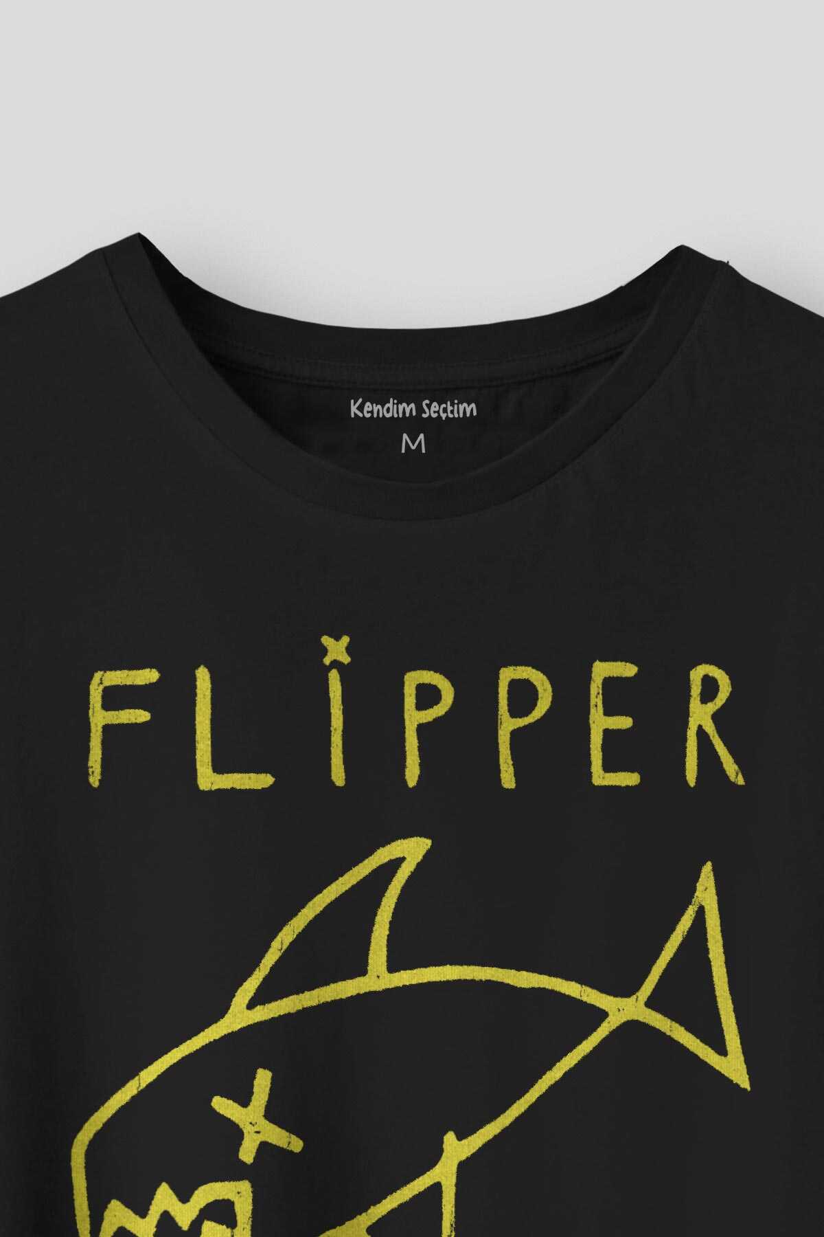 Kurt Cobain Flipper T-shirt Nirvana Grunge Rock Punk Baskılı Siyah Tişört Unisex