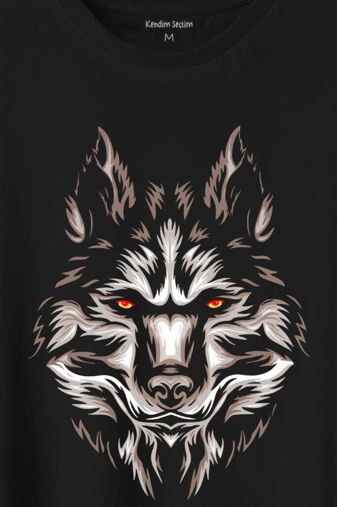 Kurt Kafası Wolf Head Bozkurt Kırmızı Gözlü Baskılı Tişört Unisex T-Shirt