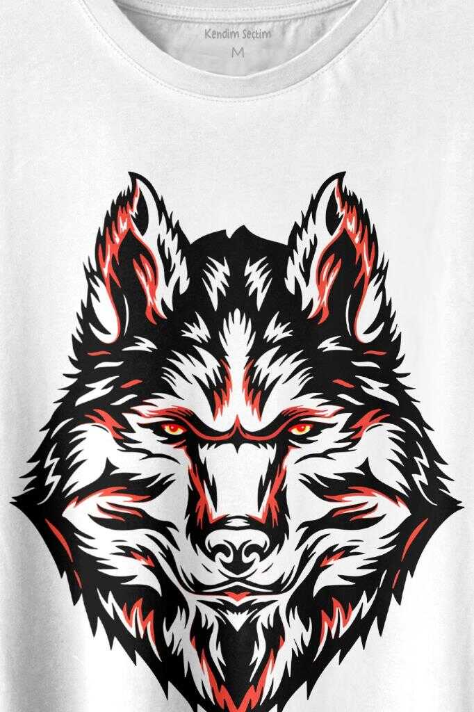 Kurt Kafası Wolf Head Bozkurt Kırmızı Gözlü Baskılı Tişört Unisex T-shirt