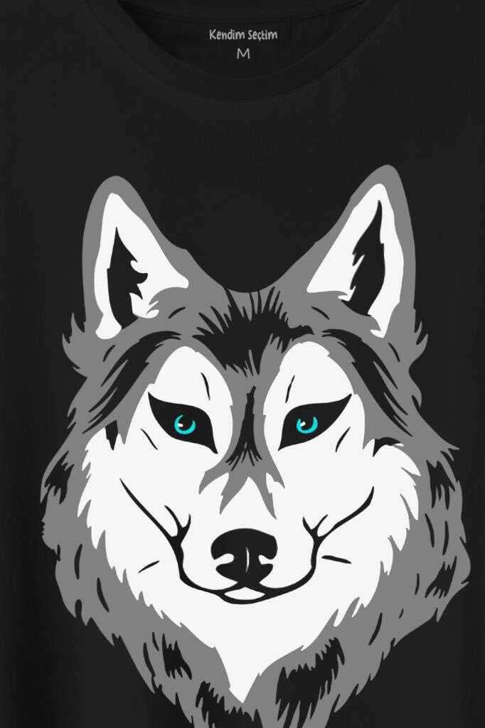 Kurt Kafası Wolf Head Bozkurt Yeşil Gözlü Baskılı Tişört Unisex T-Shirt