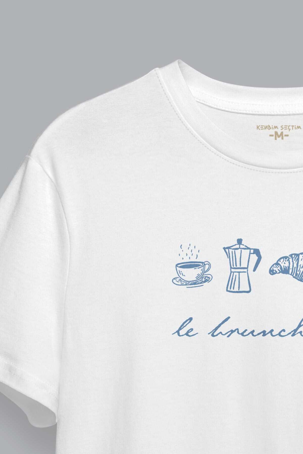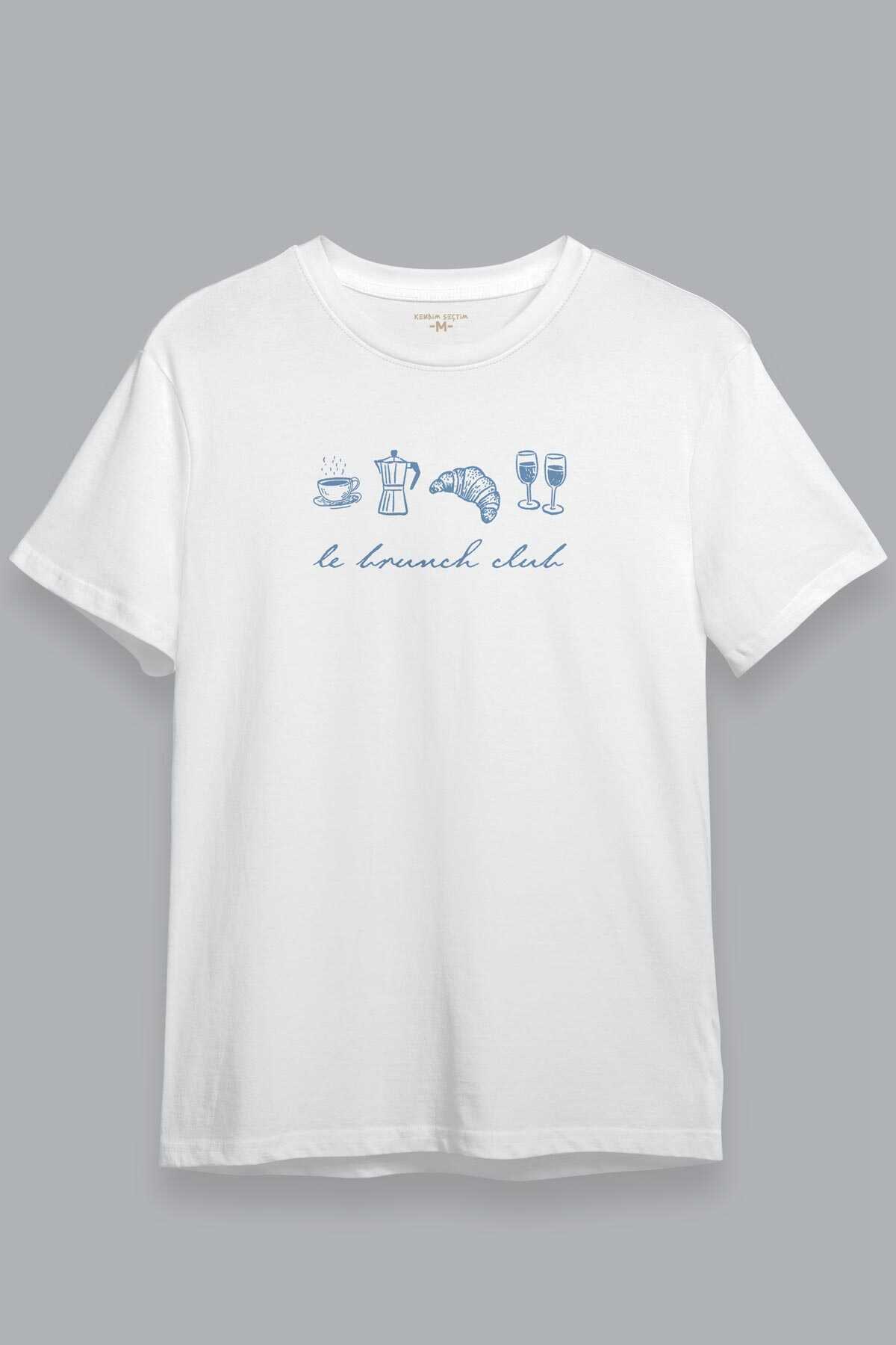 Le Brunch Club Beyaz Unisex Tişört Croissant Kahve Wine Minimal Tasarım Kısa Kollu T-shirt