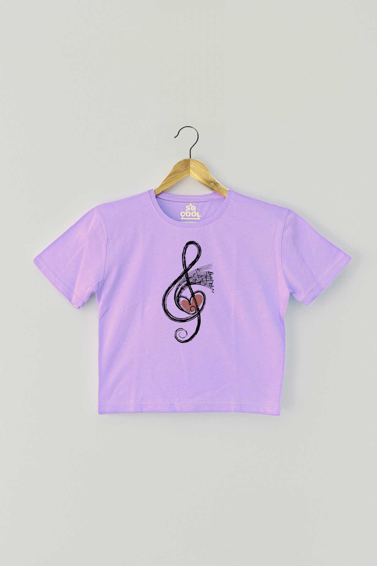 Lila Crop T-shirt Müzik Nota Sol Anahtarı Music Mor Renk Kadın Tişört Baby Tee