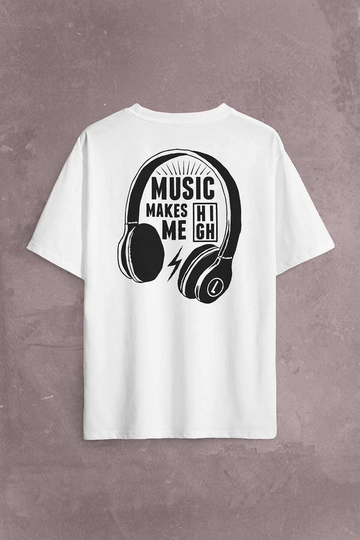 Lost Boyz Music Makes Me High Kulaklık Sırt Ön Baskılı Oversize Tişört Unisex T-Shirt