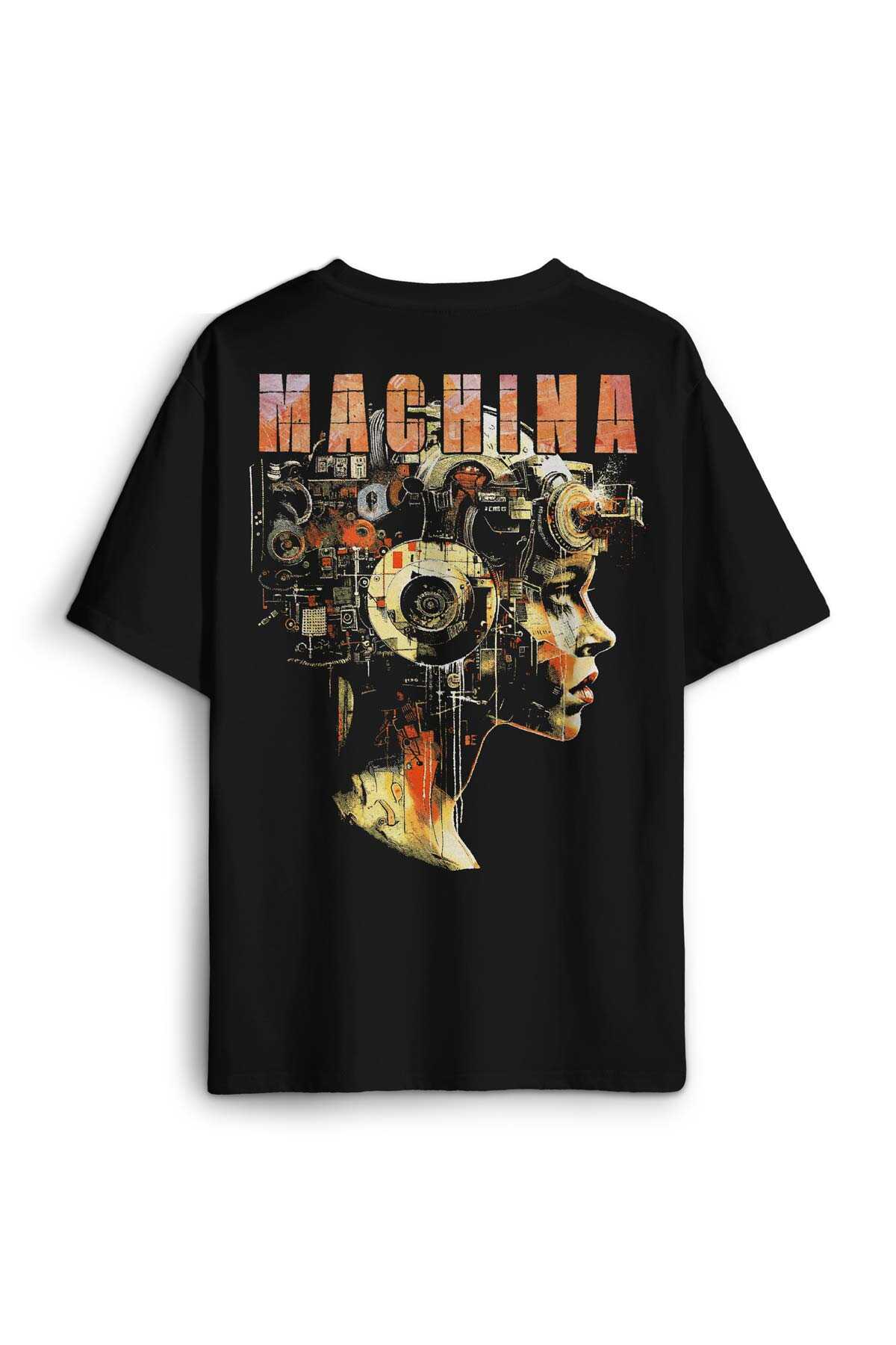 - Machina Yapay Zeka Ai Computer Baskılı Oversize T-shirt Siyah Unisex Tişört - OVR12S-4415