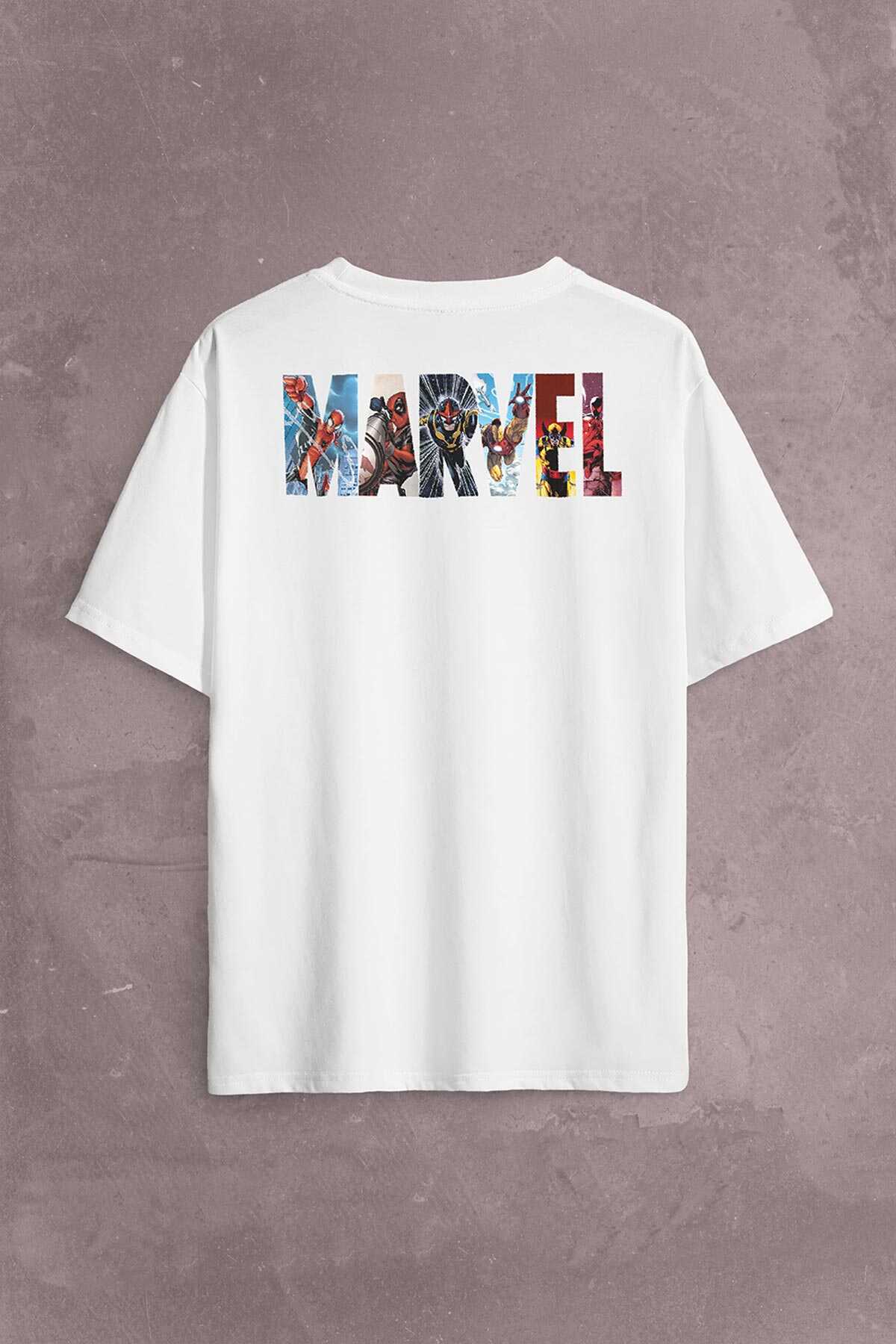Marvel Spiderman Hulk Deadpool Iron Man Sırt Ön Baskılı Oversize Tişört Unisex T-Shirt OVR12B1889