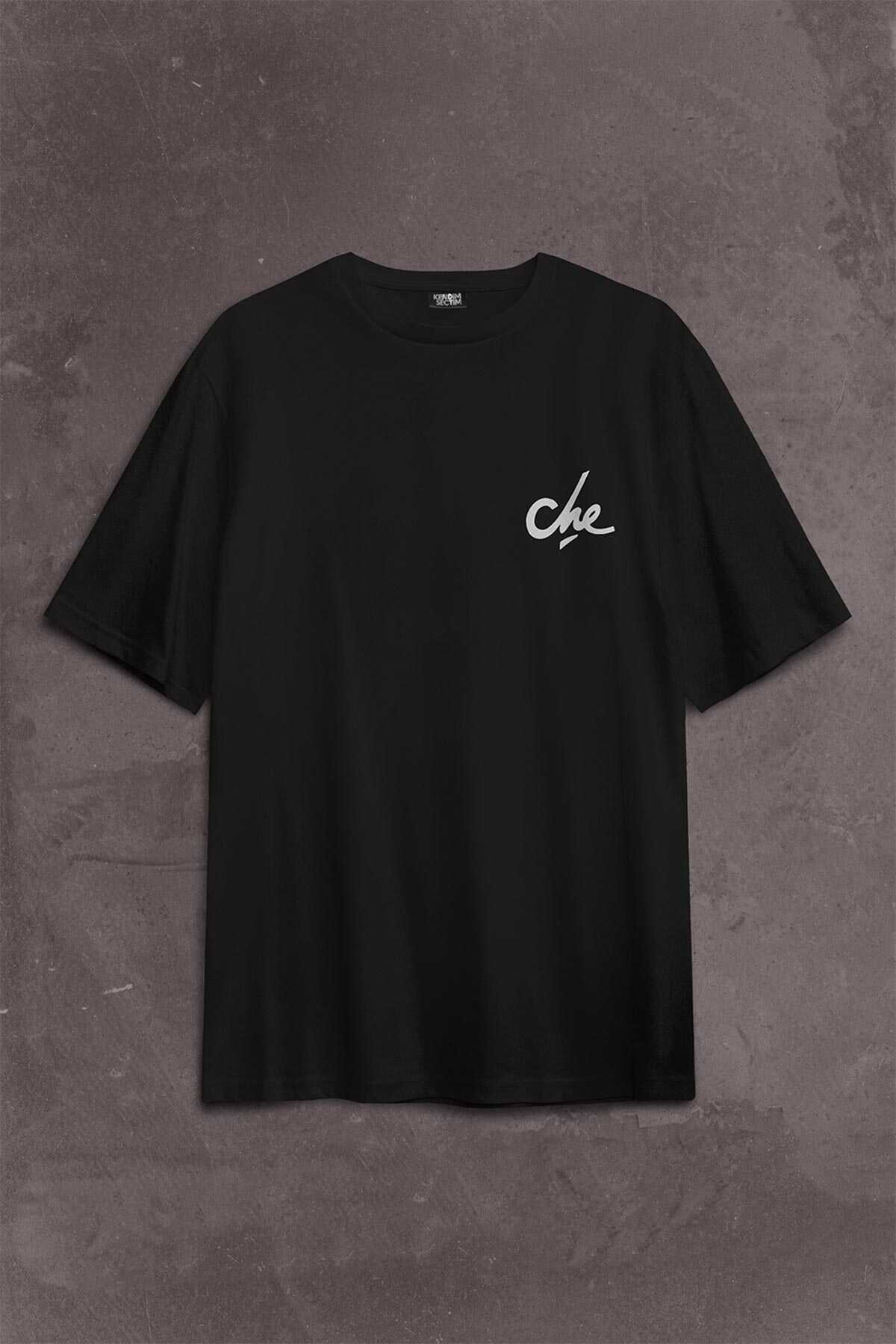*Metal Poster Ernosto Che Guevara Hafl Face Yarım Yüz Sırt Ön Baskılı Oversize Tişört Unisex T-Shirt