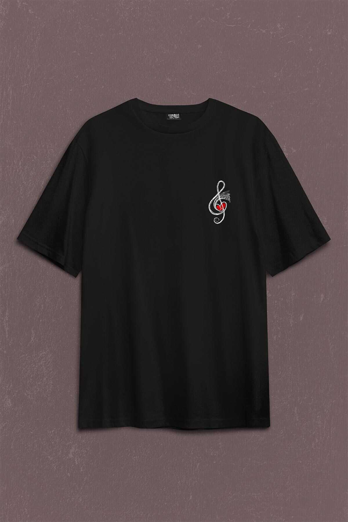 Metallica Müzik Nota Sol Anahtarı Music Sırt Ön Baskılı Oversize Tişört Unisex T-Shirt