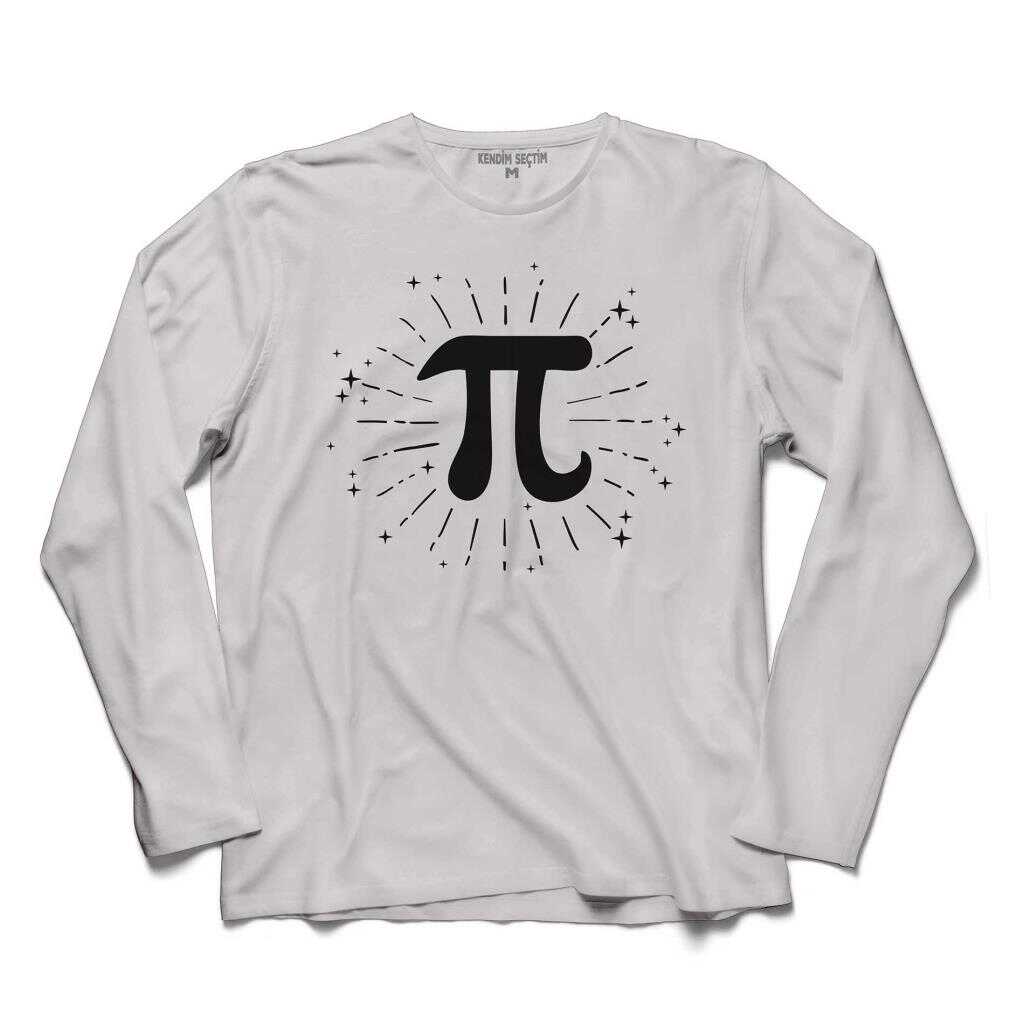 Minimal Işıltı Pi Sayısı Beyaz Uzun Kollu Tişört