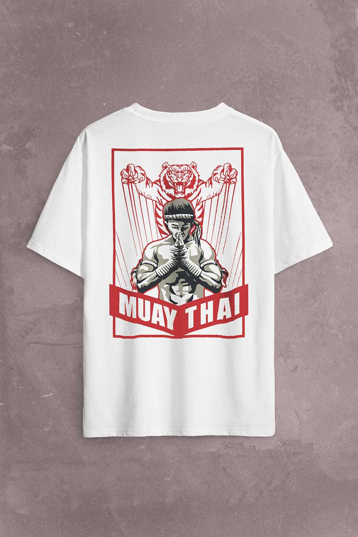 Muay Thai Tiger MuayThai Kick Boks Boxing Uzak Doğu Sırt Ön Baskılı Oversize Tişört Unisex T-Shirt