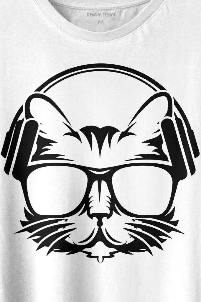 Müzik Dinleyen Kulaklık Kedi Cat Music Baskılı Tişört Unisex T-shirt
