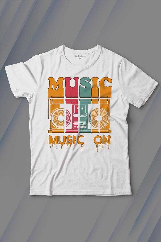 Müzik Music On Kaset Teyp Baskılı Tişört Çocuk T-shirt
