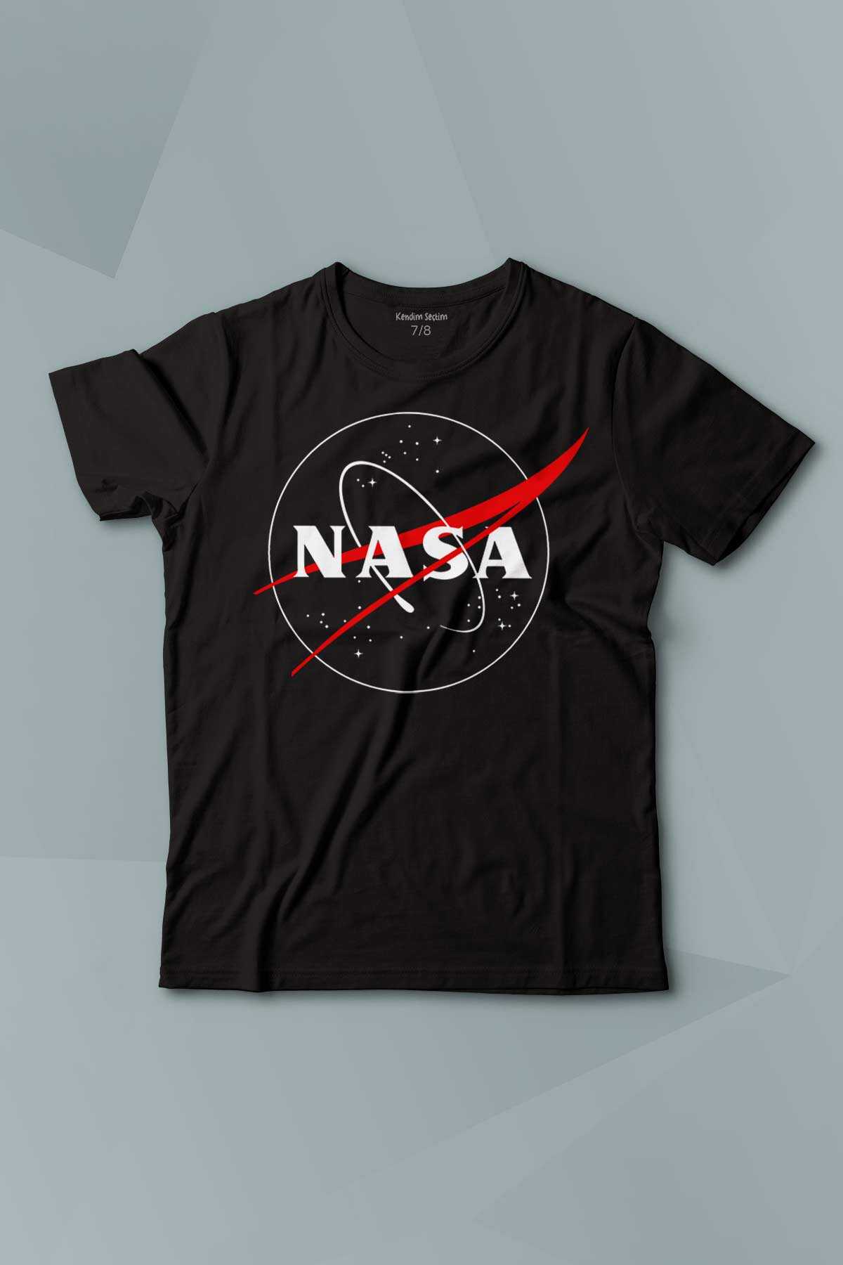 Nasa Logosu Siyah Kırmızı Uzay Cosmos Baskılı Çocuk Tişört Kısa Kollu