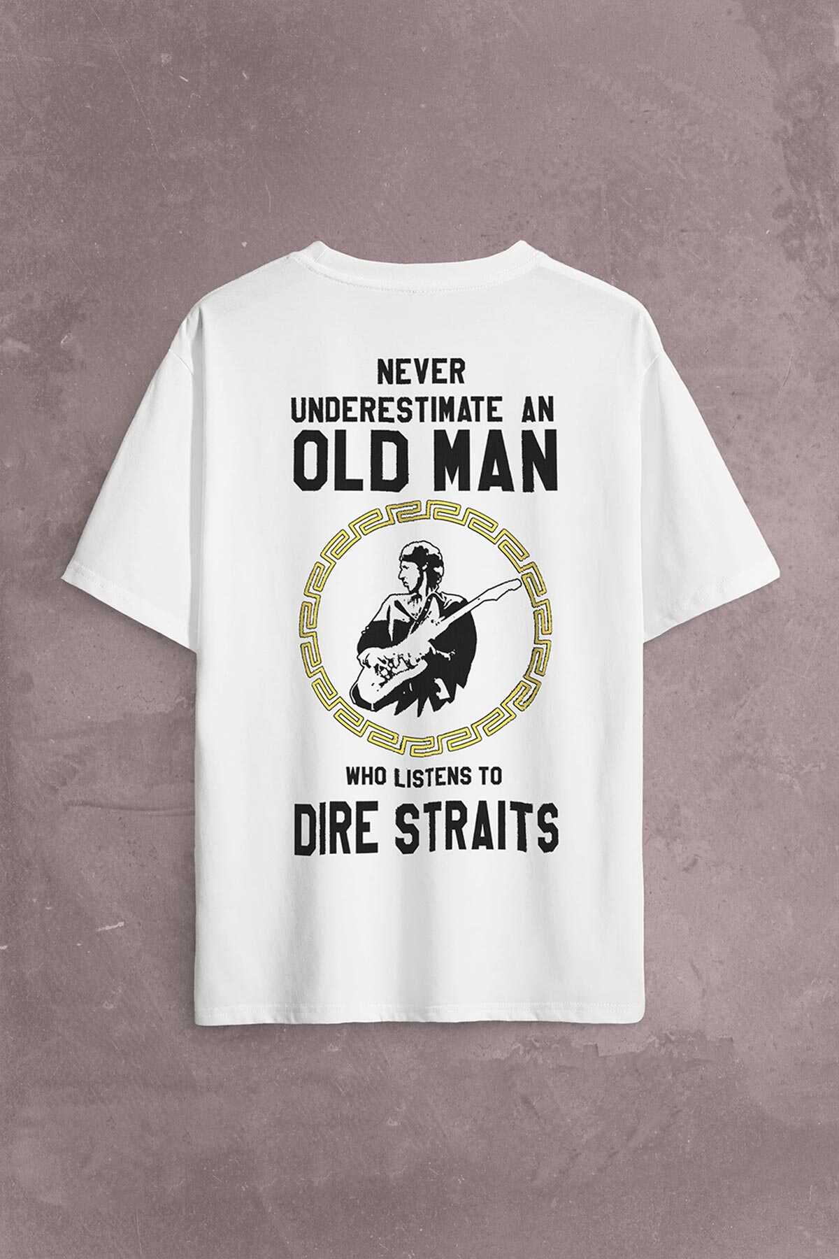 Never Undersestimate An Old Man David Mark Knopfler Sırt Ön Baskılı Oversize Tişört Unisex T-Shirt