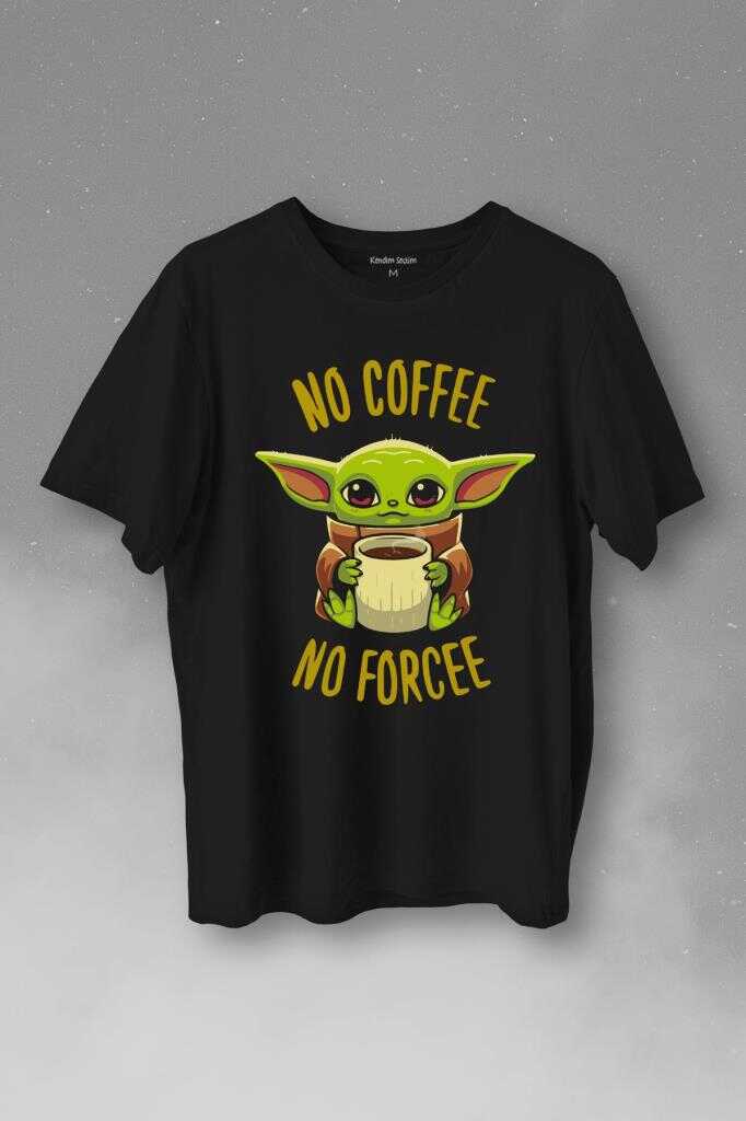 No Coffee No Forcee Kahve Güç Kuvvet Enerji Baskılı Tişört Unisex T-Shirt