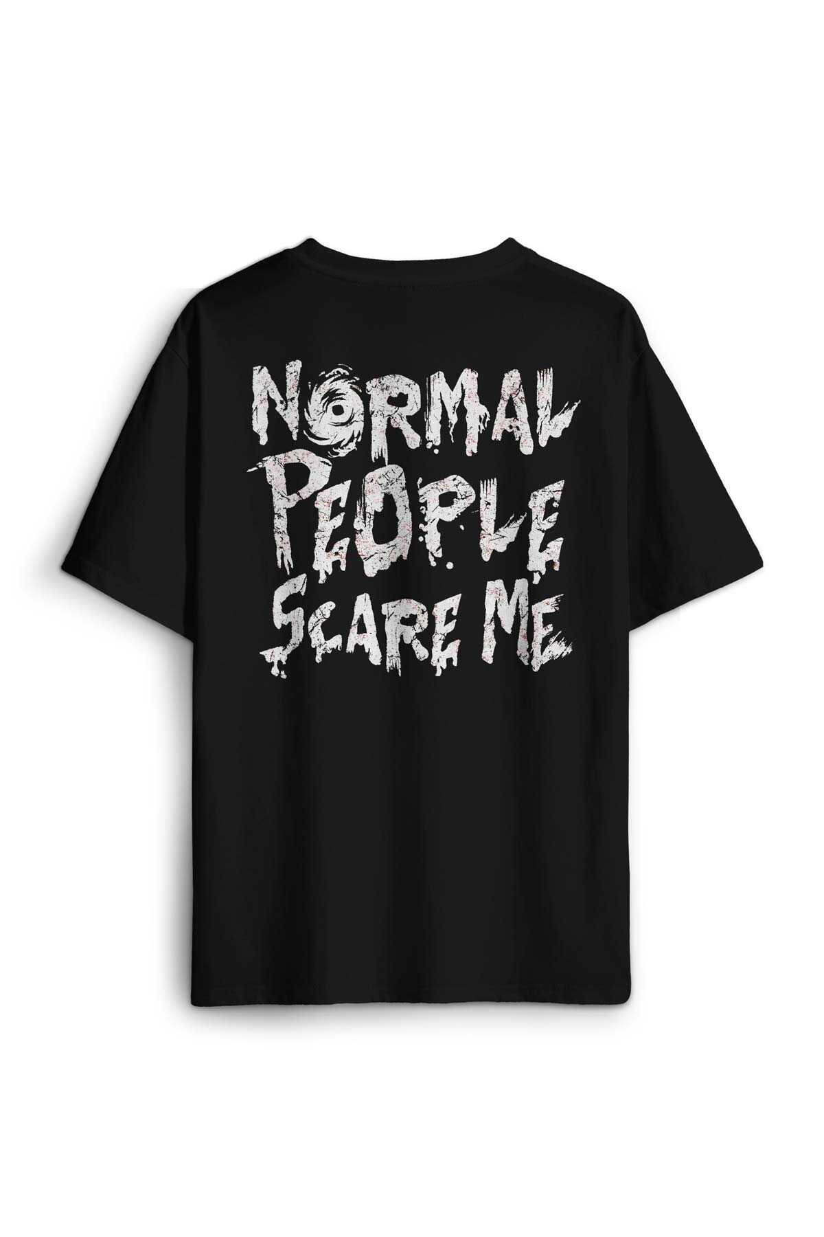 Normal People Scare Me Normal İnsanlar Gothic Sokak Sırt Ön Baskılı Oversize Tişört Unisex T-Shirt