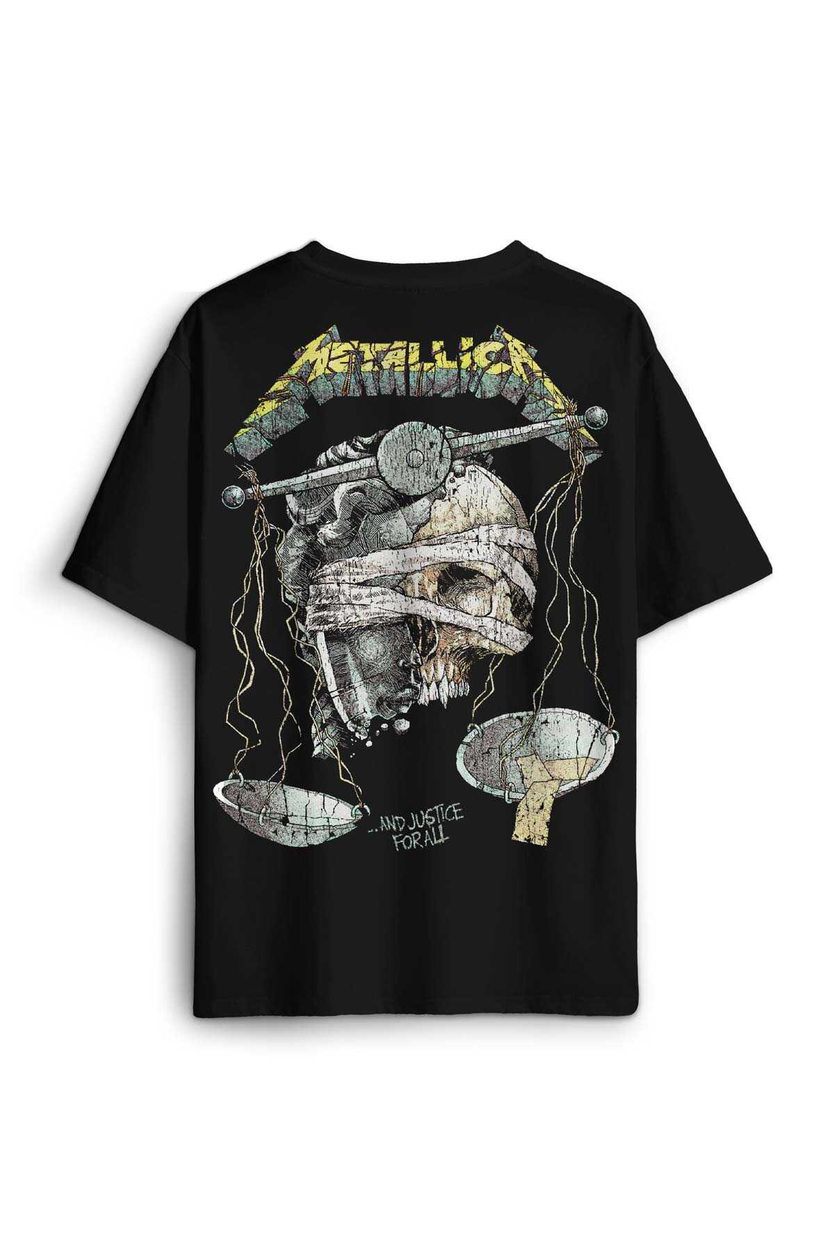 Oversize T-shirt Metallica And Justice For All Rock Metal Music Baskılı Siyah Unisex Tişört