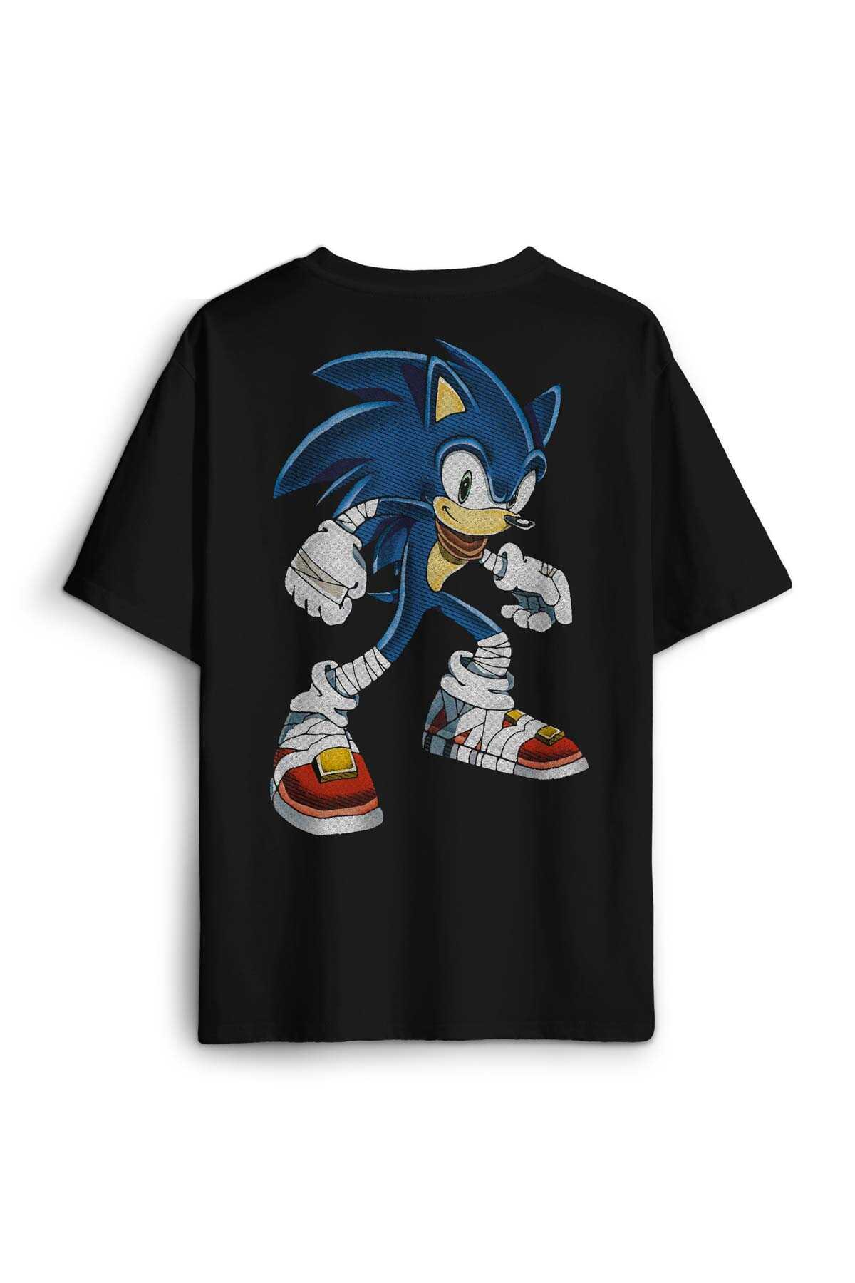 - Oversize T-shirt Sonic The Hedgehog Boom Cartoon Sonic Baskılı Siyah Unisex Tişört - OVR12S-4334