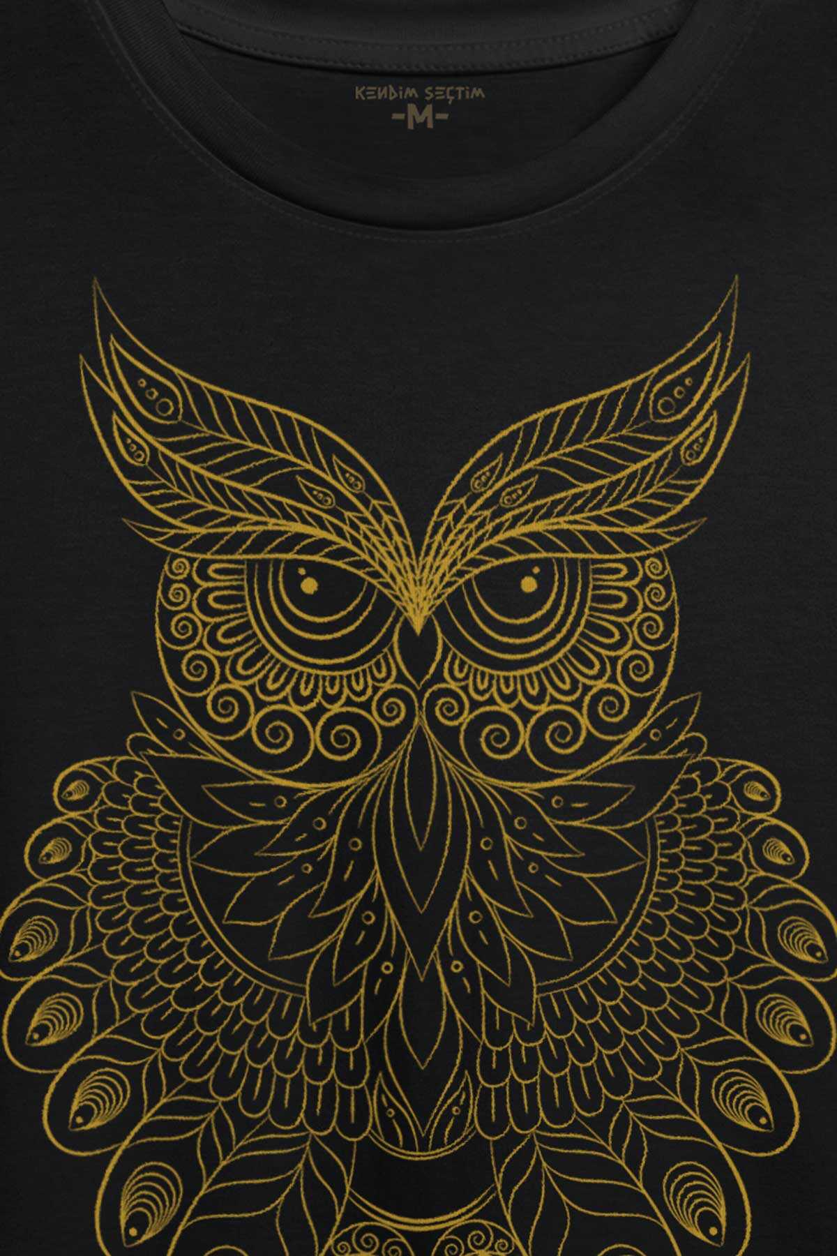 Owl Baykuş Silüeti.Calligraphy Çizim Baskılı Tişört Unisex T-shirt