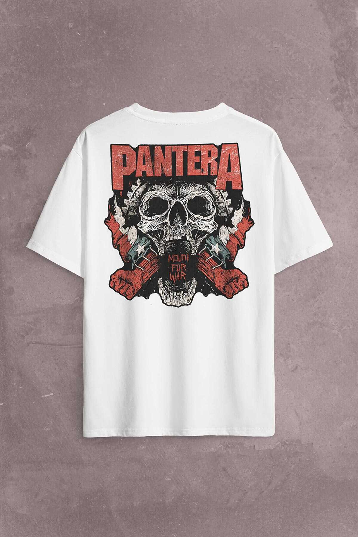 Pantera Skull Kuru Kafa Groove Heavy Metal Logo Sırt Ön Baskılı Oversize Tişört Unisex T-Shirt