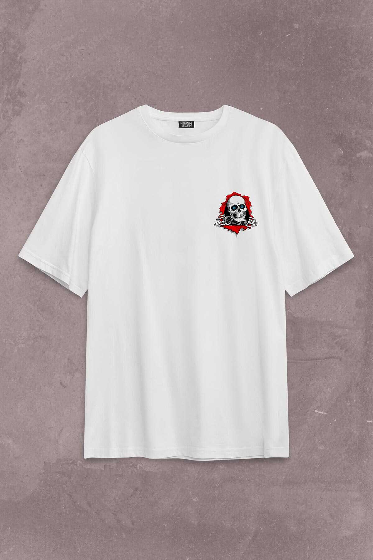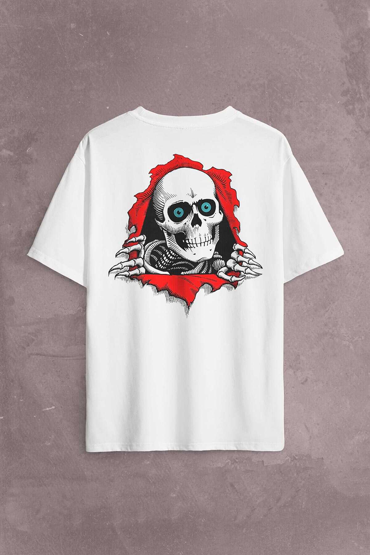 Powell Peralta Skull Kuru Kafa Skeleton Mavi Göz Sırt Ön Baskılı Oversize Tişört Unisex T-Shirt