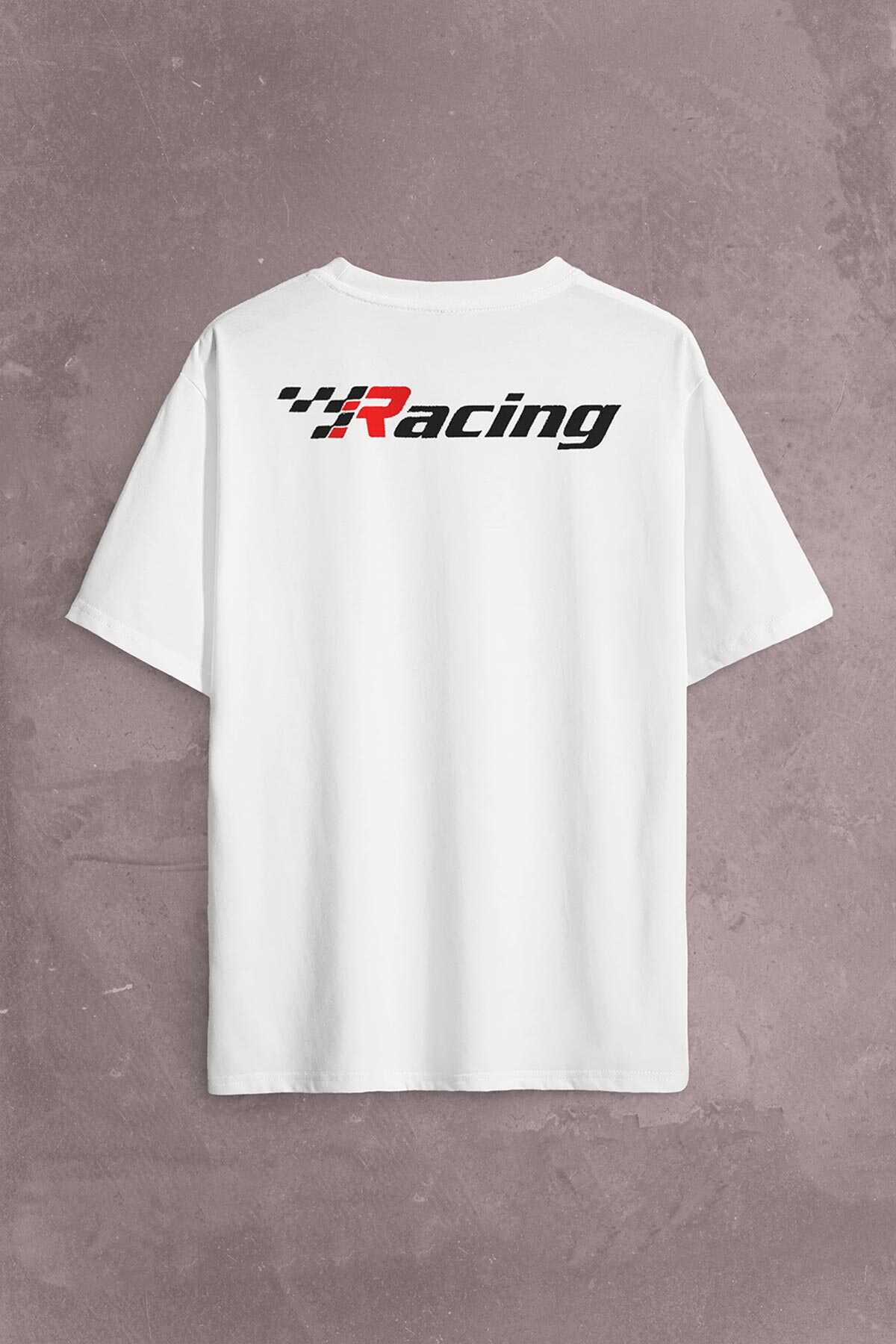 Racing Formula1 Araba Yarışı Motor Drag Sırt Ön Baskılı Oversize Tişört Unisex T-Shirt