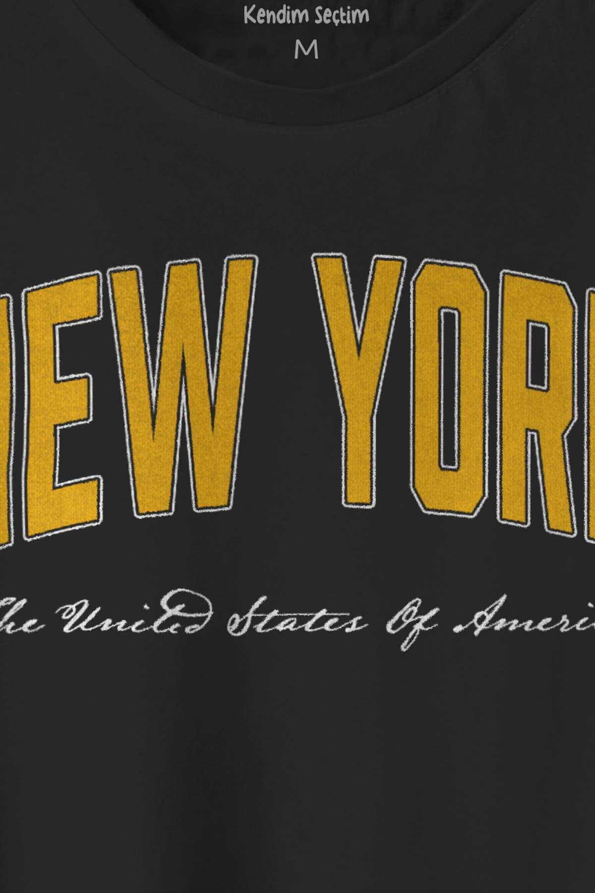 Regular T-shirt New York City Şehir Amerika USA Yazı Baskılı Unisex Siyah Tişört