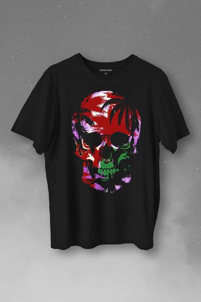 Rengarenk Kafatası Skull Head Lila Renkleri Baskılı Tişört Unisex T-Shirt