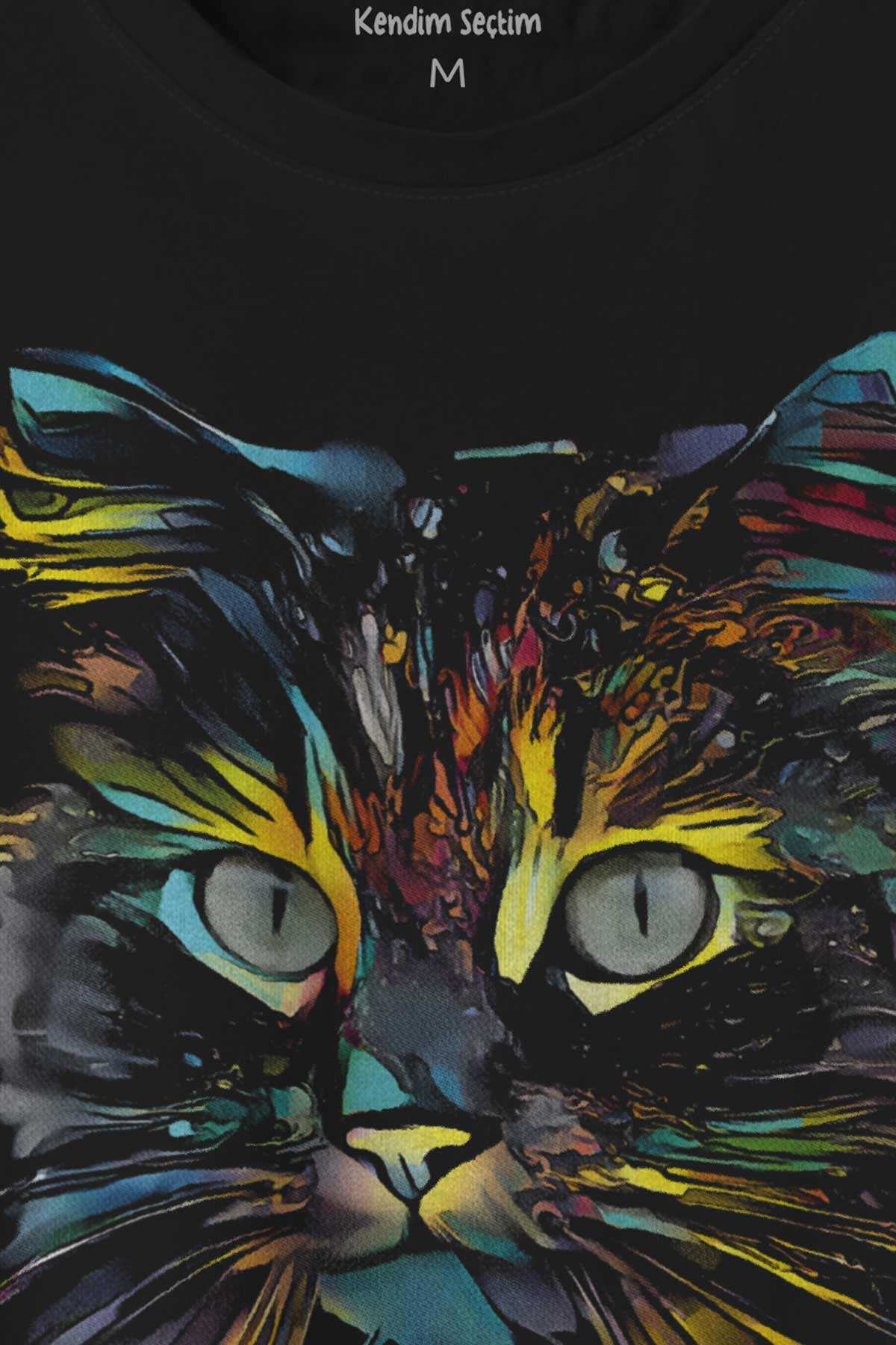 Renkli Sevimli Kedi Rengarenk Minnoş Cat Baskılı Tişört Unisex T-shirt