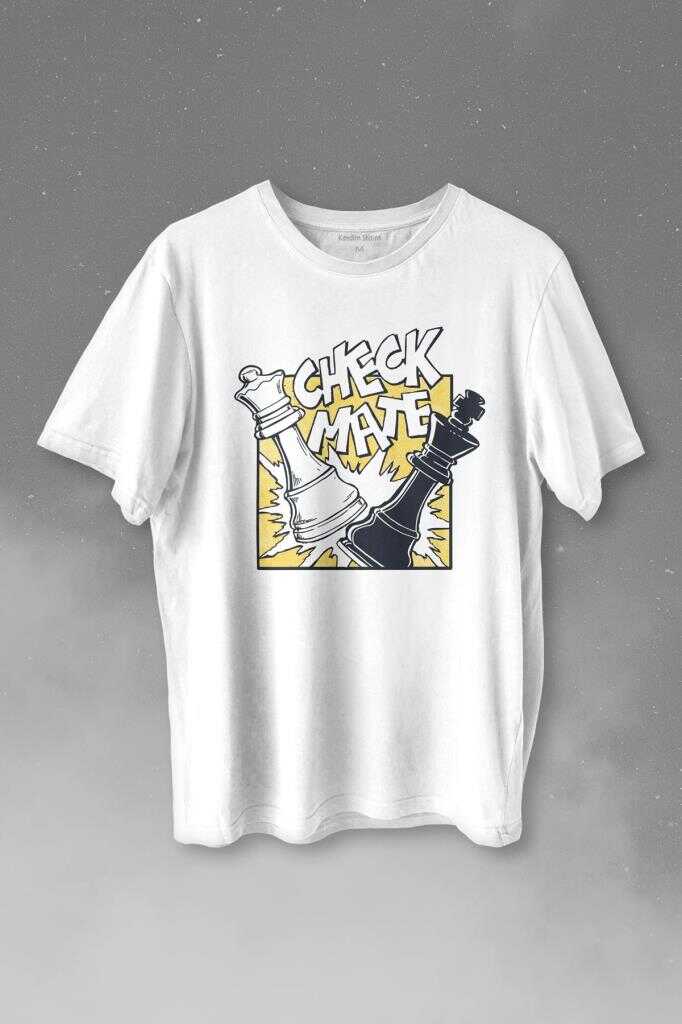 Şah Mat Satranç Check Mate Chess Kral Kraliçe Gambit Baskılı Tişört Unisex T-shirt
