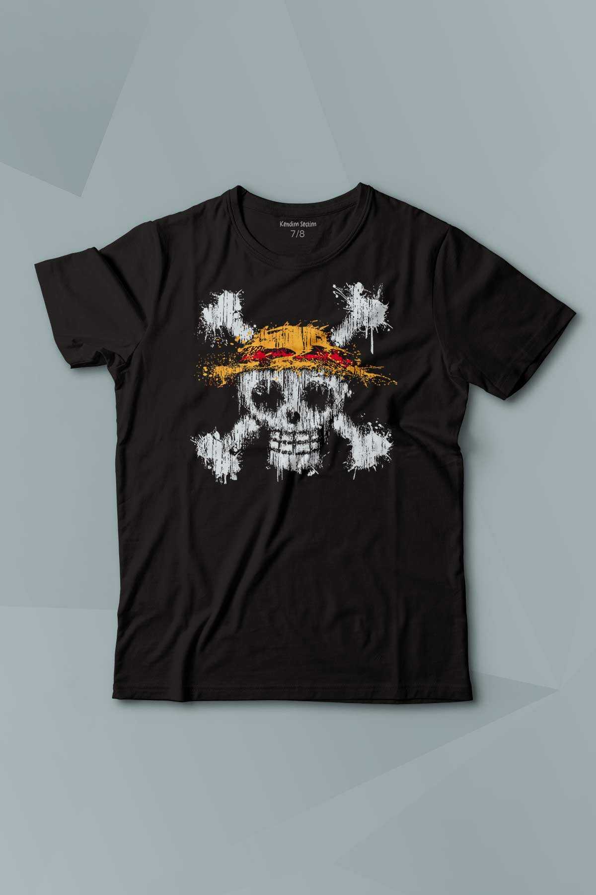 - Şapkalı One Piece Anime Baskılı Çocuk Tişört Kısa Kollu T03S4308