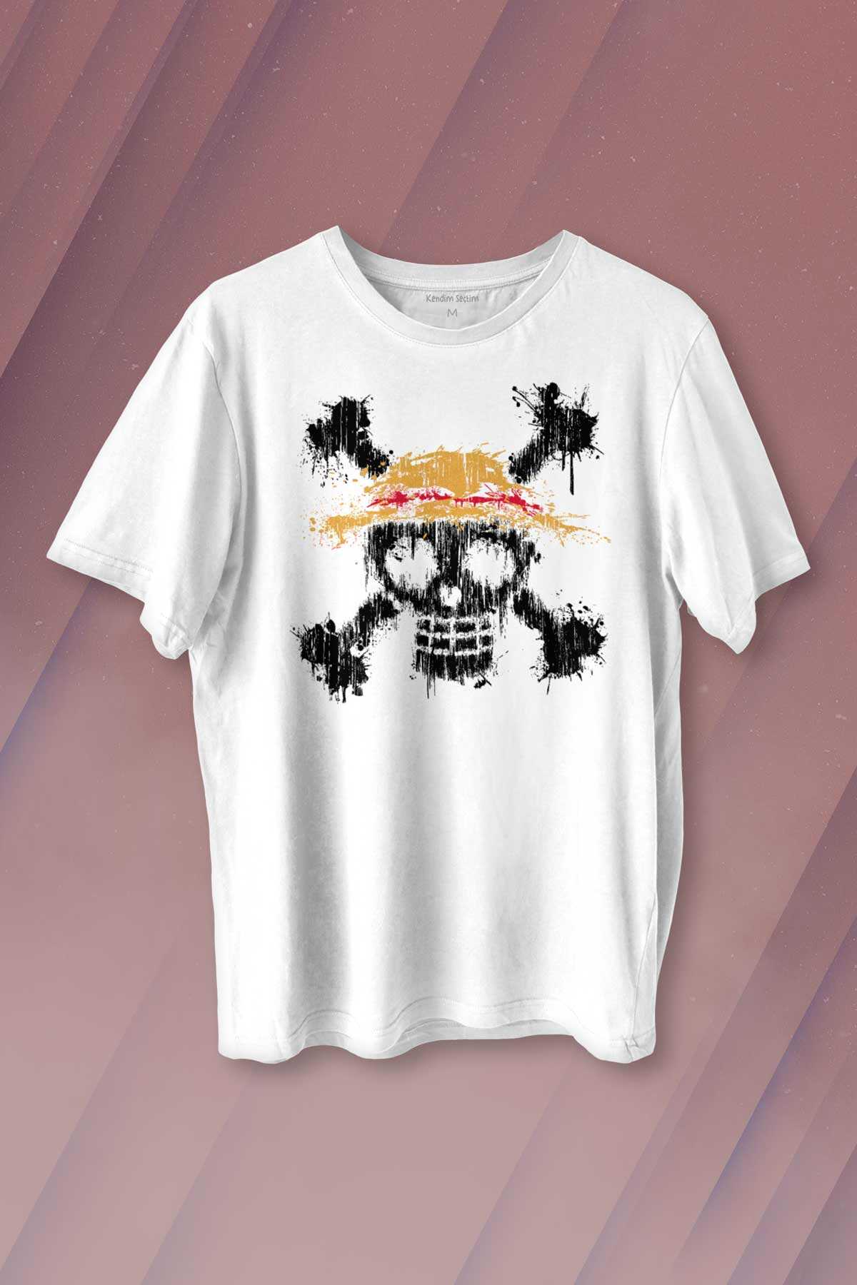Şapkalı One Piece Anime Baskılı Tişört Unisex T-shirt