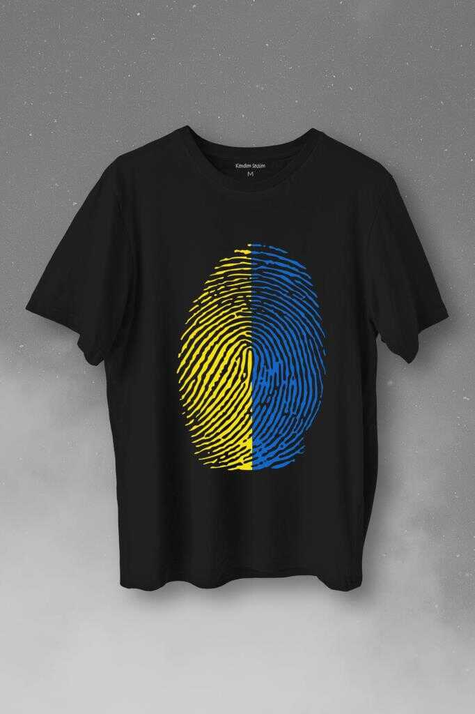 Sarı Lacivert Parmak İzi Baskılı Tişört Unisex T-Shirt