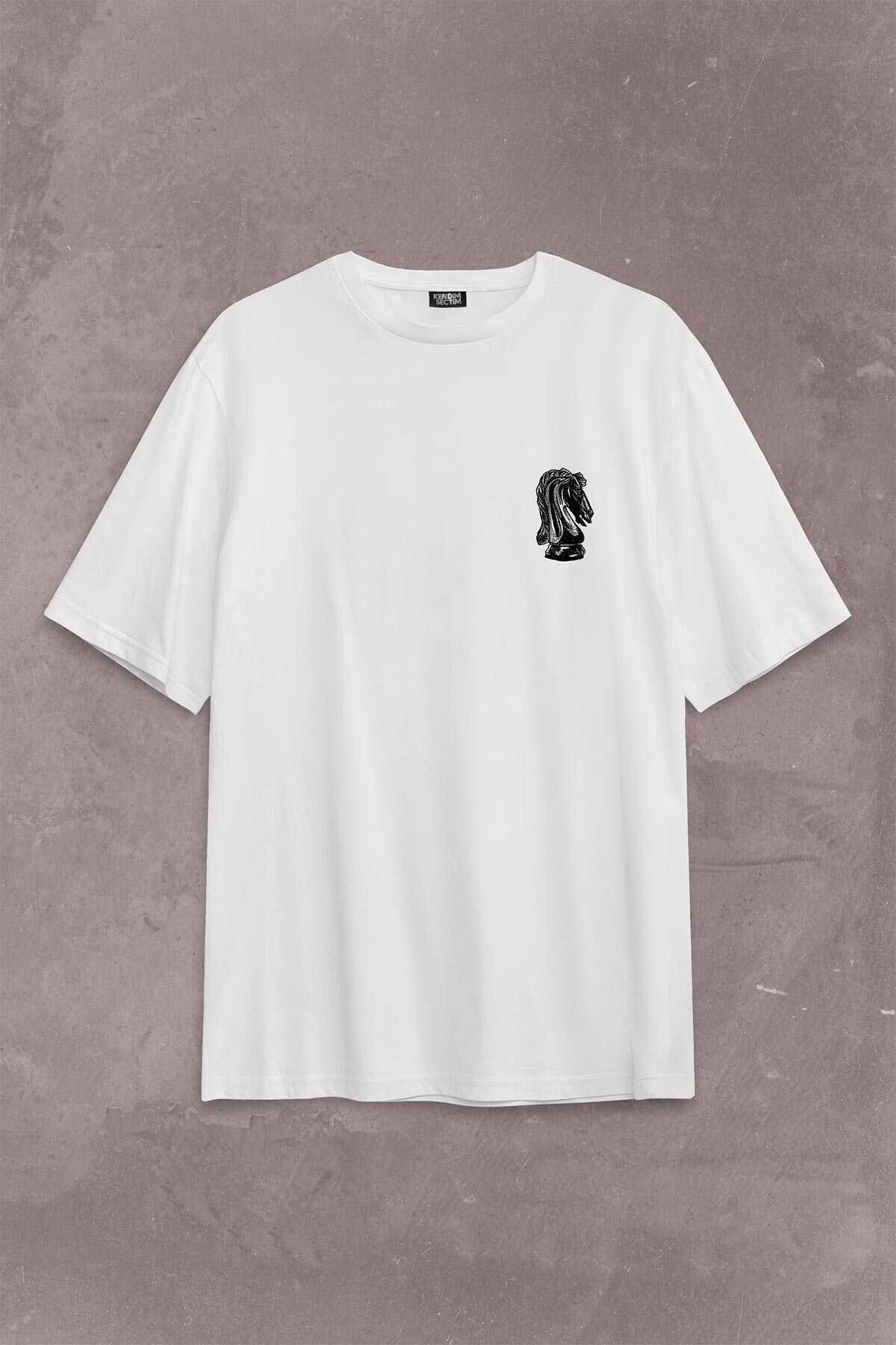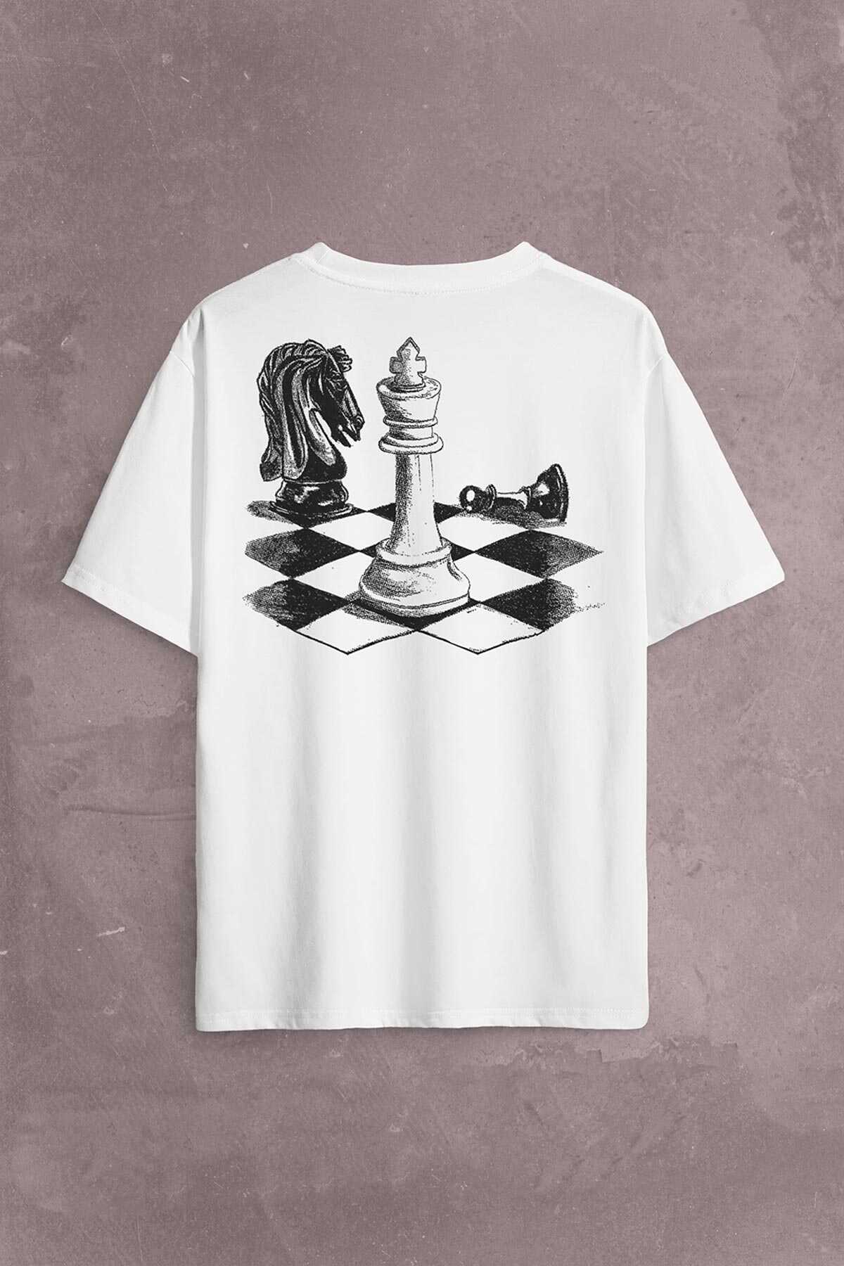 Satranç Zeka Oyunu Şah Mat Vezir Chess Santranç Sırt Ön Baskılı Oversize Tişört Unisex T-Shirt