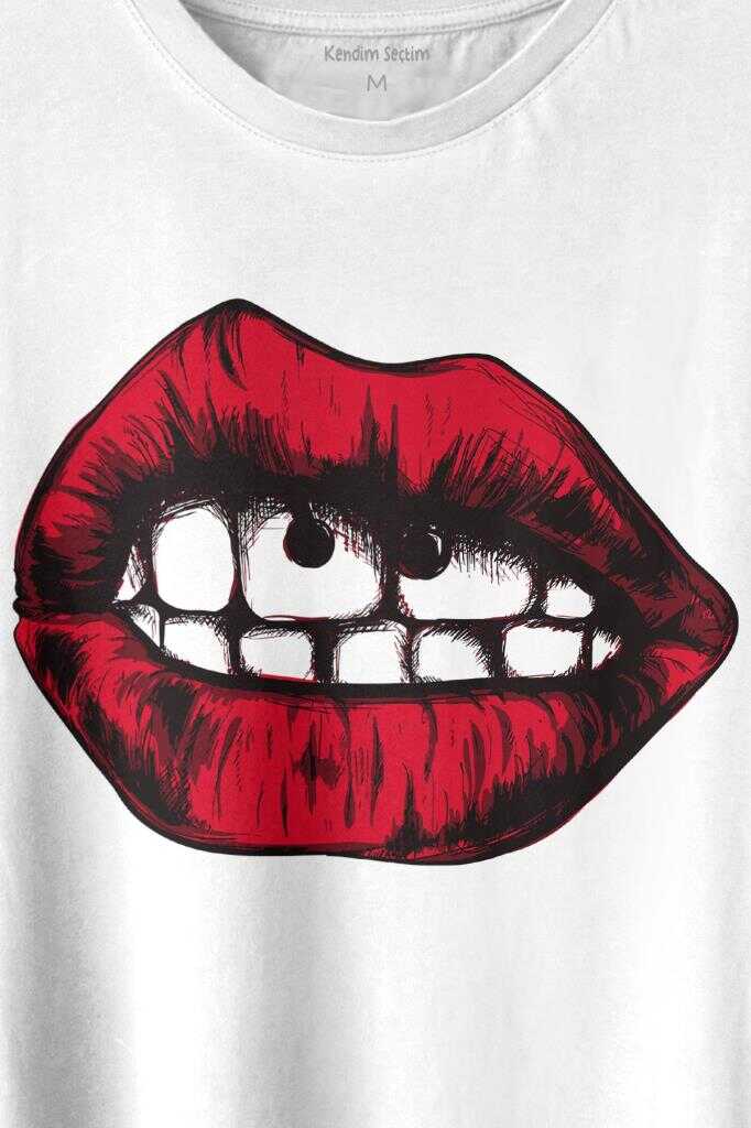Seksi Dudaklar Sexy Piercing Kadın Ağzı Baskılı Tişört Unisex T-shirt
