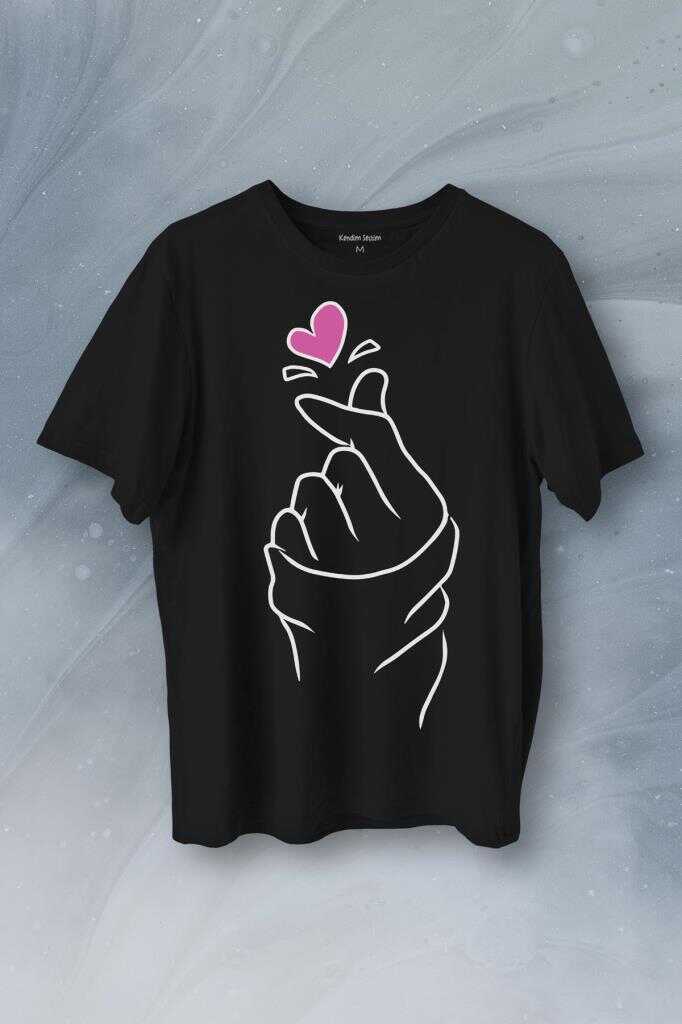 Seni Seviyorum Kore El İşareti Minimal Baskılı Tişört Unisex T-Shirt