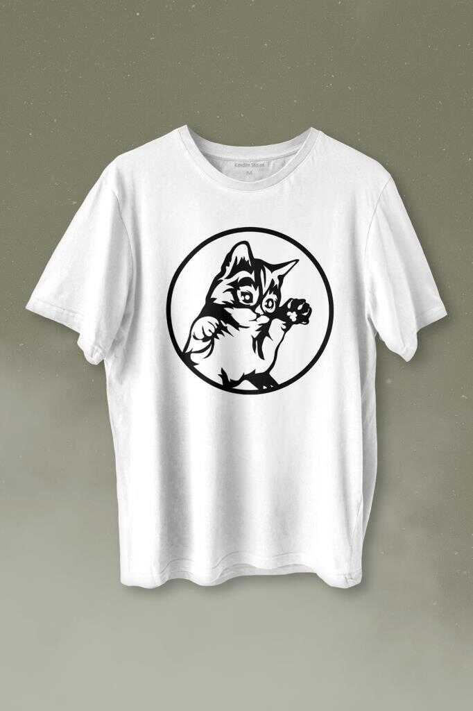 Sevimli Kedi Minik Patili Bıyıklı Cat Minnoş Baskılı Tişört Unisex T-shirt