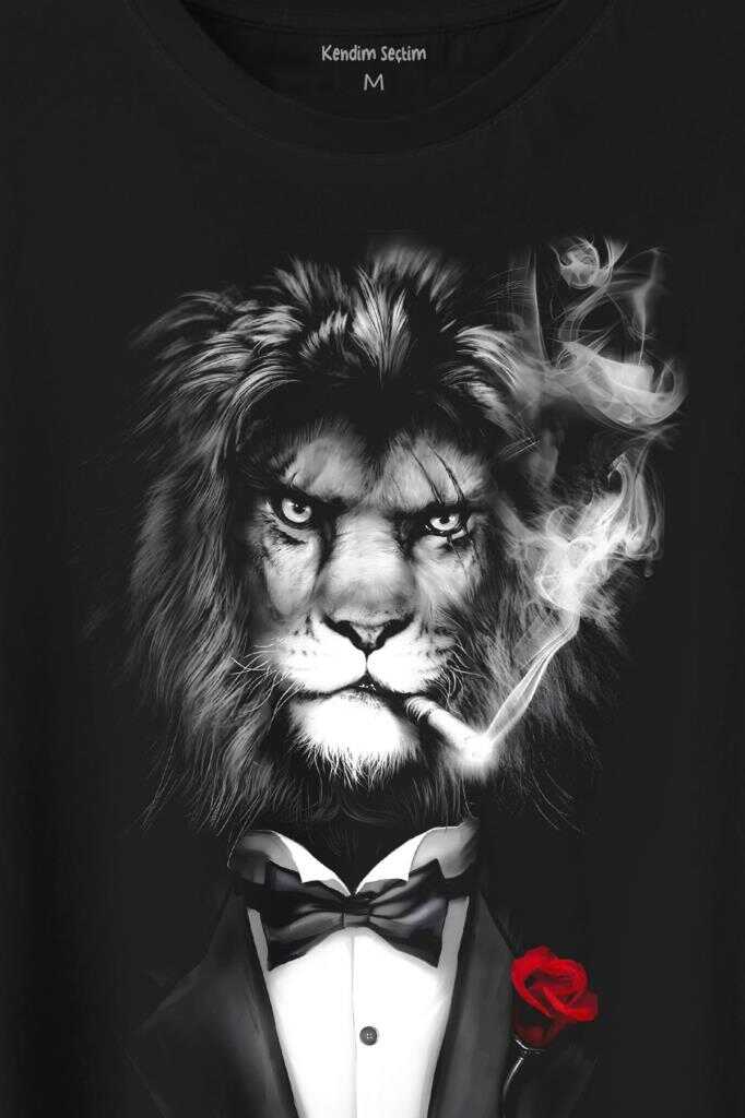 Sigara İçen King Suit Aslan Kafası Baskılı Tişört Unisex T-Shirt